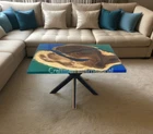 Material: Wood epoxy resin Size as per variation Customization Available, Please Message your desired size and shape This Epoxy Table is a perfect gift for anyone who appreciates the beauty of nature and the art of furniture making. It is a unique and stylish addition to any home decor, whether you're looking for a modern or rustic vibe. Blue epoxy sofa center table is a stylish and modern piece of furniture that can add a touch of elegance to any living room. A blue epoxy sofa center table is a stylish and modern piece of furniture that can add a touch of elegance to any living room. The table typically consists of a wooden base with a glass or epoxy resin top that is infused with blue pigment. Uses of a blue epoxy sofa center table: Displaying decorative items: The smooth surface of the table is perfect for showcasing decorative items such as vases, sculptures, or photo frames. Serving drinks and snacks: The table can be used to serve drinks and snacks to guests during gatherings. Working on a laptop or reading: The table provides a stable surface for working on a laptop or reading a book. Adding a pop of color to your living room: The blue color of the table can add a vibrant and refreshing touch to your living room decor. Easy to clean: The smooth surface of the table is easy to clean with a damp cloth. Unique design: The combination of wood and blue epoxy resin creates a unique and eye-catching design. Versatility: The table can be used in a variety of settings, from modern to traditional. Note: This process is whole done by hand and are based on natural wooden log, the table shown in the photos has already been purchased so actual product may vary from the picture shown. We will also share processing images with the buyer step by step. 1. The table top is made in Agra India & fully handmade. 2. The top will be delivered by FedEx or DHL free of cost door to door. 3. If there is any local tax custom duties or Vat will be paid by the Buyer at the destination. 4. The parcel is dispatch with proper packing & fully insured Covering all kind of risk 5. To maintain the table top is simple soap & water & dry cotton Cloth. 6 If You Are Looking Something Customize, Let Us Know We Will Make For You as Per Your Design, Size & Shape. 7. This is only Table Top & Base/Leg is not included. It can be used as Coffee/Dining Table Top , Counter Top, Wall Panel.