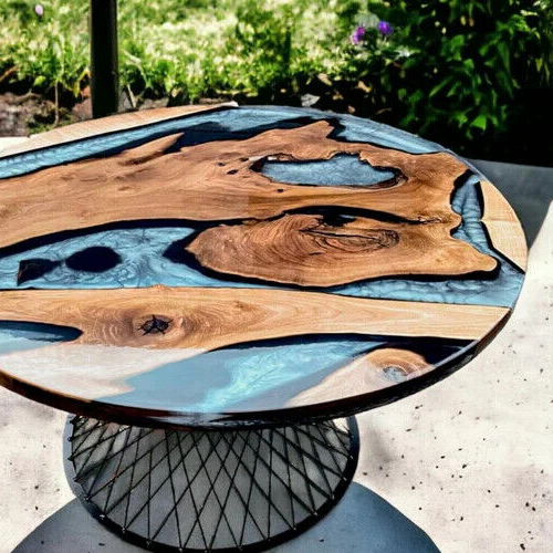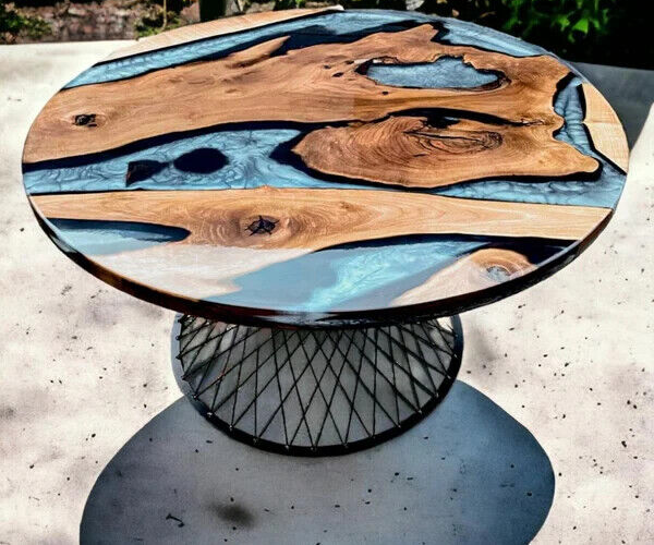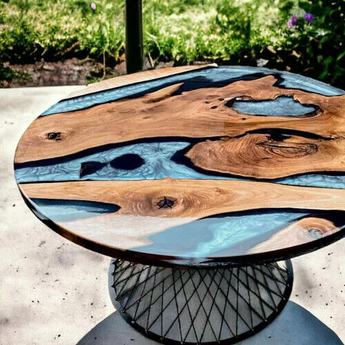 We Accept Custom Order too please contact us. Elevate your living space with our Modern Round Epoxy Coffee Table, where contemporary design meets timeless elegance. This stunning piece seamlessly combines the sleek sophistication of blue epoxy resin with the warmth and character of natural wood, creating a focal point that transcends trends. Key Features: Contemporary Aesthetics: The modern, round silhouette of this coffee table makes it a chic addition to any living room. Its clean lines and minimalist design contribute to a contemporary aesthetic that effortlessly complements various interior styles. Blue Epoxy Resin Top: The tabletop is adorned with a sleek blue epoxy resin finish, adding a touch of luxury and depth to the surface. The resin not only provides a high-gloss shine but also ensures durability, making it resistant to scratches and stains. Versatile Functionality: Whether you're enjoying your morning coffee, hosting friends, or simply displaying your favorite decor items, this coffee table offers versatile functionality. Its round shape encourages easy conversation and creates a welcoming centerpiece in your living space. Handcrafted Excellence: Each coffee table is meticulously handcrafted by skilled artisans, ensuring a level of excellence that goes beyond mass-produced furniture. The attention to detail and dedication to quality craftsmanship make this piece truly unique. Easy Maintenance: The combination of blue epoxy resin and solid wood not only enhances aesthetics but also facilitates easy maintenance. Simply wipe the surface with a soft cloth to keep it looking pristine. Ideal for Modern Living Spaces: Whether you're furnishing a contemporary apartment, a stylish loft, or a modern home, this coffee table effortlessly enhances the ambiance of your living space, making a statement without overpowering the room. Specifications: Dimensions: 18"x18" Inches Materials: High-quality wood, epoxy resin Colors: Blue Finish: Glossy and Durable Shipping and Packaging: * This is Only table top, Leg /base is not included , If you have any kind of query ,please message us * We can make the table top similar to this as it is handmade or natural process you will not get the same as shown in picture but you will get the similar one * The table top is made in Agra India & fully handmade. * The top will be delivered by FedEx or DHL free of cost door to door. * If there is any local tax, custom duties or Vat will be paid by the buyer at the destination. * The parcel is dispatch with proper packing & fully insured covering all kind of risk. Thanking You.....