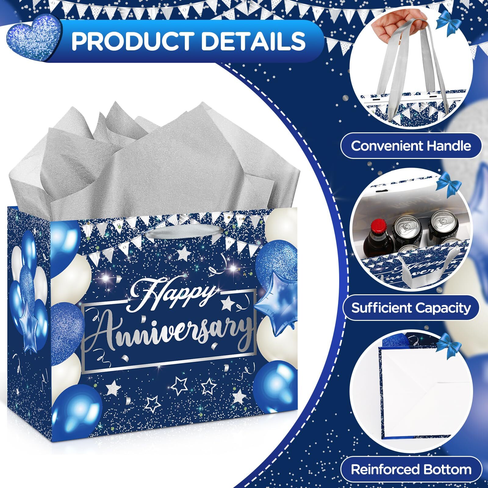 eBay Product Listing Welcome to Your Favorite My Store Your satisfaction is our top priority – Shop confidently Blue Silver Anniversary Party Gift Bag with Tissue Papers and Card, Blue Silver Wedding Anniversary Paper Gift Wrapping Bag for Men Women Wedding Party Supplies 11.8'' Item Gallery Item Description Happy Anniversary Favor Bag: You will get 1pc navy blue and silver happy anniversary gift bag, 1pc anniversary greeting card, 3pcs tissue papers. you can wrap a gift with tissue paper, write your wishes on the blank greeting cards, and put them into the anniversary gift bag. which is quite convenient and eye-catching party favors set Suitable Size: The wedding anniversary gift bag measures 11.8 x 9.8 x 5.3 inches, large enough to party favors such as candies, anniversary gifts, cakes, etc. The tissue paper measures 19.6 x 27.5 inches, suitable for wrapping items. wedding anniversary greeting card measures 4.7*7 inches Unique Design: The blue anniversary paper gift bag and greeting card are designed with an eye-catching "Happy Anniversary" letter, stars, balloons, and confetti patterns, beautiful and full of the party atmosphere, very suitable for anniversary party, wedding anniversary party decor Quality Material: The anniversary gift wrapping bag and greeting card are made of quality cardboard, lightweight, printed with bright patterns, and not easy to fade, suitable for you to anniversary party favors or other items Wide Application: The blue silver anniversary gift party favors bag with the card is suitable for men's or women's anniversary and wedding anniversary parties. the navy blue anniversary gift bag can be used to candies, cakes, or anniversary gifts, and also be a table decoration for your anniversary party, adding more highlights Special Features Features: [Wide Application]-The blue silver anniversary gift party favors bag with the card is suitable for men's or women's anniversary and wedding anniversary parties. the navy blue anniversary gift bag can be used to candies, cakes, or anniversary gifts, and also be a table decoration for your anniversary party, adding more highlights Specifications: Main Colors: blue, silver Material: cardboard, paper Size: Blue Anniversary Gift Bags: 11.8x 9.8 x 5.3 inches Blue Anniversary Greeting Card: 4.7x 7 inches Tissue paper: 27.5 x 19.69 inch Package includes: 1 x Blue Silver Happy Anniversary Gift Bag 1 x Blue Silver Happy Anniversary Greeting Card 3 x Tissue Papers Our Guarantee To You We offer fast shipping, free delivery, and 100% customer satisfaction guarantee. Not satisfied? Return your item for free within 30 days. 30-Day Free Returns Shipping Details Items will be sent to your eBay address. Please verify before purchasing. Typical delivery within 3-7 business days. Professional shipping services used for all orders. We ship to the continental US (48 states only). Unable to deliver to Alaska, Hawaii, or territories. No APO/FPO or PO Box deliveries available. We use eco-friendly packaging Payment Options We accept these secure payment methods: All transactions securely processed through eBay's payment system. Simple Returns 30-Day Satisfaction Promise Contact us through eBay messages within 30 days of delivery. We'll provide return instructions and our address. Return the item in its original condition. We'll process your refund within 48 hours of receiving the item. Get In Touch Have questions about your order? Contact us through eBay messaging for prompt assistance. We typically respond within 24 hours.