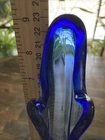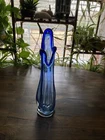 This vintage 9-inch blue swung vase is an original piece of art glass from the 1960s, hand-blown in the United States. The vase features an abstract art theme with a unique shape that adds a touch of artistic elegance to any space. The blue color and the production technique of hand-blown glass contribute to its one-of-a-kind charm, making it a distinctive addition to any collection or as a standalone decorative piece.