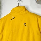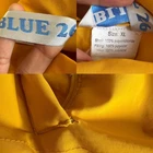 In pre owned condition Brand: Blue 2 100% polyester Size men's XL Would best fit a taller person Front zip closure Has 2 inside pockets / 2 outside pockets Cozy fleece inner lining Outside feels like PVC Water wind resistant Cosmetic flaws include: -tiny minor stains throughout -hole on the corner of outside pocket -missing metal loop in bottom See all photos for details Measurements taken flat lay: Shoulders: 20" PTP: 25" Length: 31"