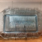 This vintage Indiana Glass bread plate tray features a Last Supper theme in blue Depression Glass. The rectangular tray measures 11 inches in length, 7 inches in width, and 1.25 inches in height. It is a unique piece depicting Jesus with a production style of pressed glass from the 1970s in the United States. The set includes a single tray with a design suitable for all occasions.