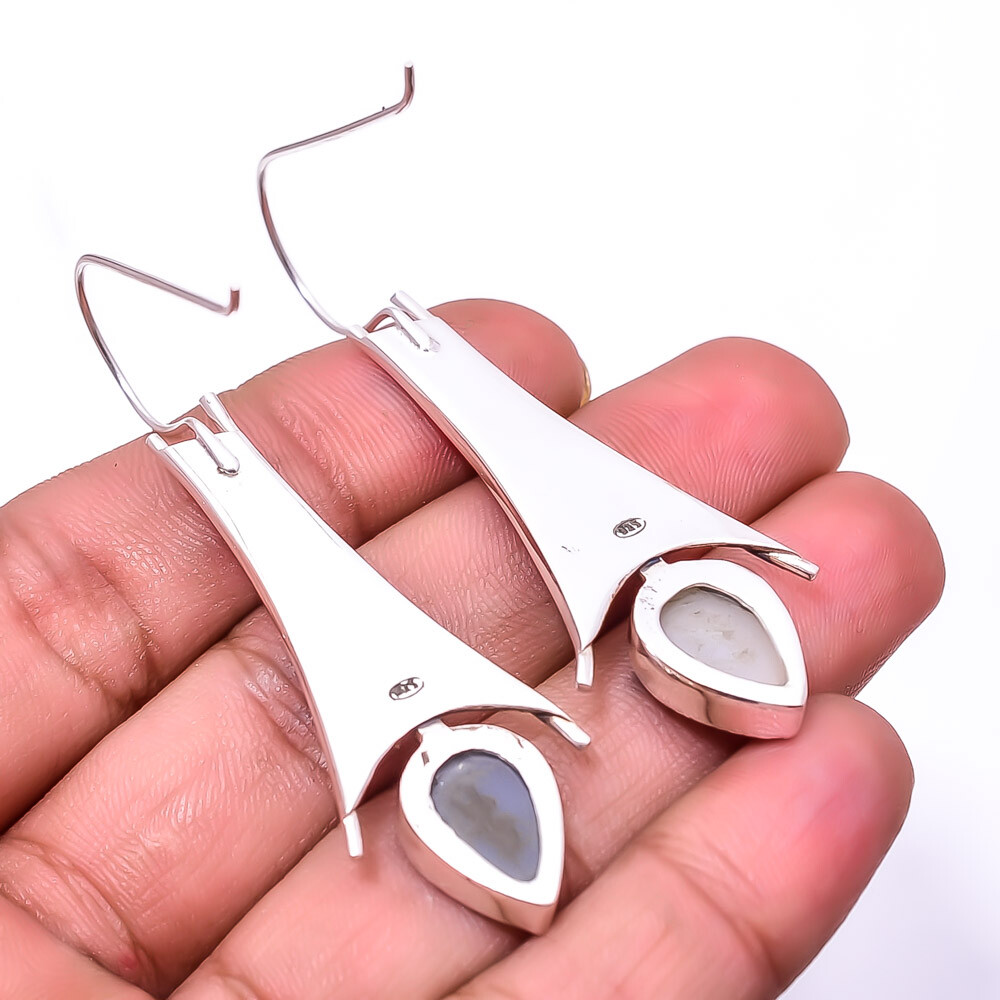 $ 19.42Titanium Blue Agate Drusy Sterling Silver Handmade Earrings 2.42 Inch E7323-98