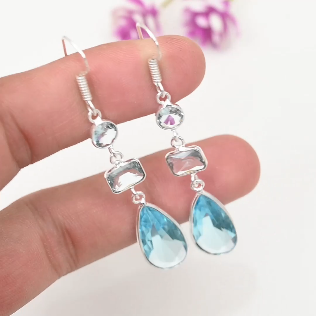Pink Kunzite Gemstone 925 Sterling Silver Handmade Dangle Earring Jewelry Gift