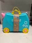 Unicorns and travel go hand-in-hand with this charming Blue Trunki Ride On Kids Suitcase. Designed for the young adventurer, this 16" suitcase is adorned with a playful unicorn pattern that's sure to delight. The durable plastic construction ensures longevity through numerous trips to fantasyland and beyond. Functional as it is adorable, this Trunki suitcase features smooth-rolling wheels and a convenient tow strap for easy maneuvering. Perfect for girls who love a pop of color in their luggage collection, this suitcases is both stylish and practical, making it a great companion for every journey.