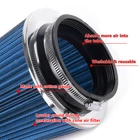 Blue Universal Clamp On Cone High Flow Air Intake Filter 9"Tall 3" 3.5" 4" Inlet SPECIFICATIONS: Type: Air Filter Material: Non-woven Fabric +Rubber + Metal Air Filter Type: Dry Air Filter Style: Round Tapered FEATURES: 100% Brand New and Never Used or Installed Increase horsepower, torque and improve the gas mileage. It universally fit for any 3inch/3.5inch/4inch air intake hose. The high flow air filter help engine to draw more cooler air resulting in better throttle response & higher explosive horsepower output. It comes with a washable and reusable cone air filter and a clamp. Filter consisted of 2 layers to double the filtration efficiency. PACKAGE INCLUDE: 1 x Air Filter 1 x Clamp 2 x Rubber Ring Adapters All accessories in the picture are included. NOTE: 1.Please confirm your address is correct 2.Please check the size measurement and the picture carefully before making payment. 3.Please allow 0.5-1 inch difference due to manual measurement. (1 inch=2.54cm) 4.Due to the difference between different monitors, the picture may not reflect the actual color of the item. Please understand, Thank you. SHIPPING INFORMATION PAYMENT WARRANTY ABOUT US CONTACT US SHIPPING INFORMATION We will only ship this item to buyers by Normal Mail, please confirm your address is correct, and if you want to change the delivery address, just feel free to contact us when you purchase. Usually, we will ship the orders out and upload the tracking number within 1-2 business days(Monday to Saturday from 8:30am-5:30pm) after you complete the payment. PAYMENT We will only accept eBay payment. Please pay using eBay payment ONLY within 7 days from the date of transaction be made. WARRANTY Please inspect your order upon receipt.No damage claims will be honored after 14 days of delivery. All item we sold come with 90 days defective warranty from the date. ABOUT US We are a powerful factory producing auto parts,and we have a professional sales and after-sales team that can provide you with excellent products and services. CONTACT US For any reason you want to contact us,We aim at satisfying every visitor, no matter what kind of situation you meet with, we will be right here to serve you. Please contact our team. If you are happy with the transaction with us, leaving us an ALL-5-STAR positive feedback would be greatly appreciated. Have a good shopping.