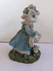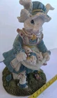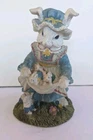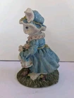 Pre-owned Blue & White Mother Rabbit Statue and Cute Bunny Babies Decor 8 1/2 " X 4 1/2 in good condition little rabbit on the bottom a little dirty see photos