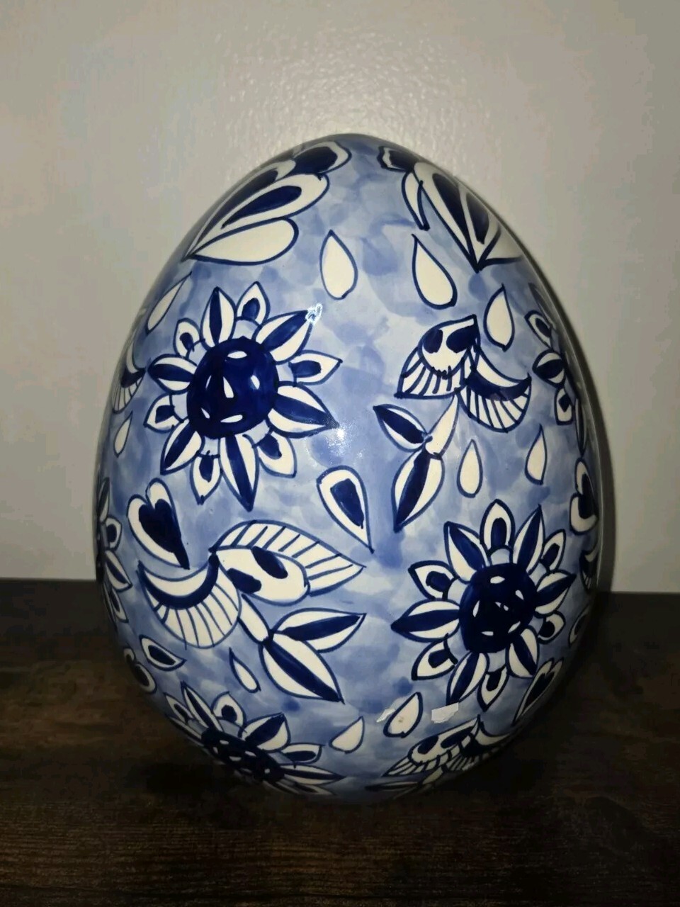 This exquisite 10-inch egg features delicate blue and white chinoiserie designs, handcrafted in China with skill and care. The intricate details of this piece reflect the rich culture of Chinese art, making it a valuable addition to any collection. Its provenance is not known, adding to the mystery and allure of this beautiful item. Whether displayed on a shelf or as a centerpiece, this egg is sure to bring a touch of elegance and Asian history to any room.