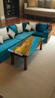 Blue epoxy table top, sofa center table top, home decor furniture, dining table