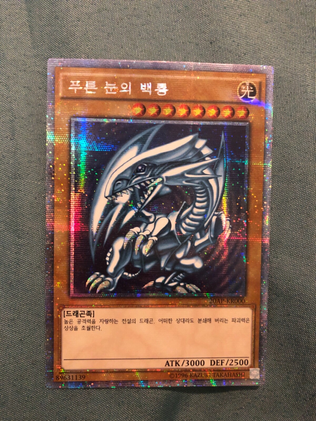 The Yu-Gi-Oh! card "Blue-Eyes White Dragon" in Korean version, specifically the Extra Secret Parallel rare variant, is a highly sought-after collectible for fans of the game. Manufactured by Konami, this Monster card with attribute of White is a crucial addition to any Yu-Gi-Oh! TCG collection. With its powerful design and rarity, this Blue-Eyes White Dragon card, numbered 20AP-KR000, is sure to be a valuable and treasured item for card game enthusiasts.