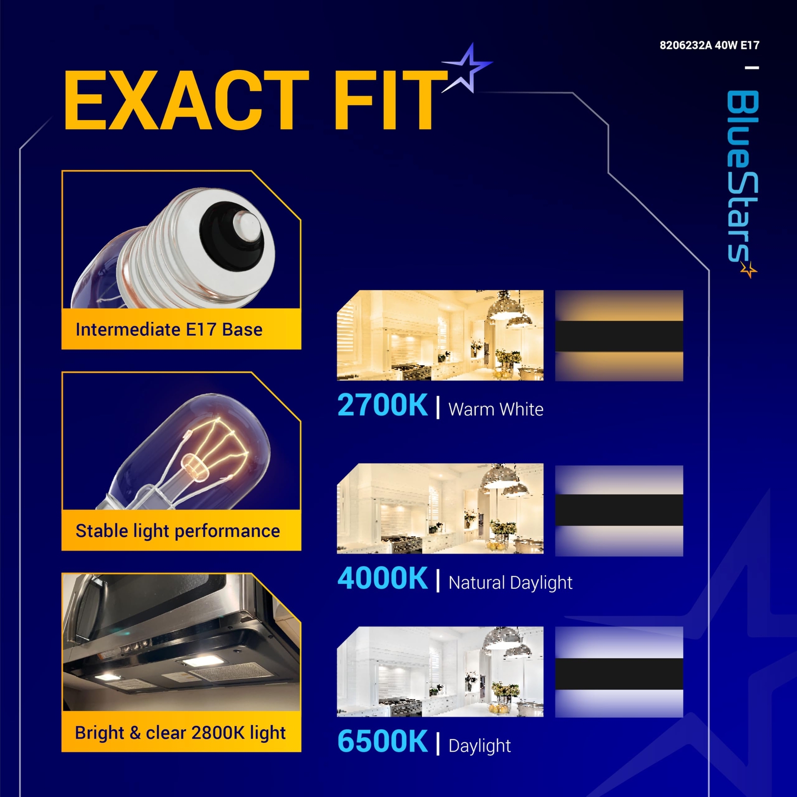 π BlueStars 6-Pack 8206232A Whirlpool Microwave Light Bulb Kei 125V 40W E17 Intermediate Base - Compatible for Whirlpool Under Hood Microwaves, Lava Lamps Salt Lamp Bulbs - Replaces 1890433 AP4512653 " alt="BlueStars 6-Pack 8206232A Whirlpool Microwave Light Bulb Kei 125V 40W E17 Intermediate Base - Compatible for Whirlpool Under Hood Microwaves, Lava Lamps Salt Lamp Bulbs - Replaces 1890433 AP4512653" style="max-width: 100%; height: auto; border-radius: 8px; border: 1px solid #ccc;" /> π Product Description SPECIFICATIONS 8206232A Whirlpool Microwave Light Bulb is 40W and has a small screw-in base. To access the exterior light bulb, you will need to remove the panel on the bottom of the microwave using a Phillips screwdriver. If your exterior light bulb has not been changed before, it is probably held in place with some silicone. You will need to cut away this silicone to remove the old bulb. If you cannot access the silicone with a utility knife, it can be removed using dental floss. Once the silicone is removed, simply unscrew the old bulb, and replace it with the new one. Be sure to disconnect the power to the microwave before you begin this repair. Works with the following models: Whirlpool GMH3204XVQ3, GMH3204XVS3, GMH5205XVB1, GMH5205XVQ1, GMH5205XVS1 KitchenAid KMHS120EBL0, KMHS120EBL1, KMHS120EBL2, KMHS120EBL3, KMHS120EBL4 Replaces part numbers: 8206232A, 1890433, 8206232, AP4512653 Works with most top name brands: Whirlpool, Maytag, Amana, Estate, KitchenAid, Roper Count on our 8206232A Microwave Light Bulb for an unrivaled mix of durability, convenient functionality, and great value for money. Click 'Add to Cart' now! If you are unsure our replacement part will fit your appliance model, you can ask us in Customer questions & answers section or contact us by visiting the Blue Stars LLC storefront -- click the "Blue Stars LLC" on a product page to get to the storefront -- then click the "Ask a question" link under Further Information. Select your reason, and then tell us about the question. βοΈ Features EASY TO INSTALL: The 8206232A Whirlpool microwave light bulb is made exactly fit for most top name brands (Whirlpool, Amana, Maytag, KitchenAid, Kenmore, Magic Chef, Estate, Jenn-Air, Roper, Caloric, Hardwick, Inglis). The whirlpool microwave light bulbs fit these models: GMH3204XVQ3, GMH3204XVS3, GMH5205XVB1, GMH5205XVQ1, GMH5205XVS1,KMHS120EBL0, KMHS120EBL1, KMHS120EBL2, KMHS120EBL3, KMHS120EBL4, etc. REPLACEMENT PART NUMBERS: 0053422, 0053437, 05200136, 05200137, 14209237, 14210453, 14210811, 14218311, 14218312, 14218318, 1890433, 2635-0004, 2635-0005, 2665-0003, 4158344, 4158365, 4158432, 4164062, 4166665, 4174608, 4338831, 4359625, 4393681, 53001372, 53437, 56001071, 56001089, 57001073, 747000, 747001, 8189961, 8204855, 8205422, 8205586, 8206232, 8206443, AP4512653, R0712011, R0712013, R0712014, R0712015, R0712016, R0713503, R9800403, R9900310, W10321375, W10598935, etc. MULTIFUNCTION BULBS WITH PREMIUM QUALITY: The 8206232A 40W E17 microwave light bulbs are used for repairing different small household appliances including microwaves, the lava lamps, refrigerators, ovens, fans, sewing machines, etc. These whirlpool microwave light bulbs are made from durable high quality material and well-tested by the manufacturer - Meets OEM standards - Ensure long-lasting and effective performance. SAVE TIME SAVE MONEY: Inexpensive way to fix or repair a microwave. This exterior whirlpool microwave light bulb has a small screw-in base. To access the exterior light bulb, you will need to remove the panel on the bottom of the microwave using a Phillips screwdriver, then install it on microwave. Be sure to disconnect the power to the microwave before you begin this repair. 100% LIFETIME PROTECTION: Enjoy reliable performance with our lifetime protection, ensuring that your product will always be covered for any defects or issues that may arise. π¦ What's in the Box? SPECIFICATIONS 8206232A Whirlpool Microwave Light Bulb is 40W and has a small screw-in base. To access the exterior light bulb, you will need to remove the panel on the bottom of the microwave using a Phillips screwdriver. If your exterior light bulb has not been changed before, it is probably held in place with some silicone. You will need to cut away this silicone to remove the old bulb. If you cannot access the silicone with a utility knife, it can be removed using dental floss. Once the silicone is removed, simply unscrew the old bulb, and replace it with the new one. Be sure to disconnect the power to the microwave before you begin this repair. Works with the following models: Whirlpool GMH3204XVQ3, GMH3204XVS3, GMH5205XVB1, GMH5205XVQ1, GMH5205XVS1 KitchenAid KMHS120EBL0, KMHS120EBL1, KMHS120EBL2, KMHS120EBL3, KMHS120EBL4 Replaces part numbers: 8206232A, 1890433, 8206232, AP4512653 Works with most top name brands: Whirlpool, Maytag, Amana, Estate, KitchenAid, Roper Count on our 8206232A Microwave Light Bulb for an unrivaled mix of durability, convenient functionality, and great value for money. Click 'Add to Cart' now! If you are unsure our replacement part will fit your appliance model, you can ask us in Customer questions & answers section or contact us by visiting the Blue Stars LLC storefront -- click the "Blue Stars LLC" on a product page to get to the storefront -- then click the "Ask a question" link under Further Information. Select your reason, and then tell us about the question. π Dimensions π Shipping & Delivery βοΈ Fast & Free US Shipping βοΈ Orders processed within 1β2 business days βοΈ Tracking number provided π¬ Customer Satisfaction Guaranteed: We stand by the quality of our products. If you have any questions or concerns, feel free to contact us β we're here to help!