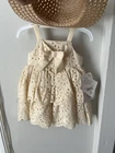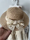 This Blueberi Boulevard Girls Sleeveless Beige Dress set features a floral pattern with a sleeveless design, perfect for summer, fall, or spring occasions. The dress has a button closure and is crafted from a blend of polyester and 100% linen, making it machine washable for easy care. The knee-length sweater dress comes in a size suitable for 12-month-old girls and includes a matching straw hat for a cute and stylish look. Ideal for parties, casual outings, or formal events, this outfit is a great addition to any little girl's wardrobe.