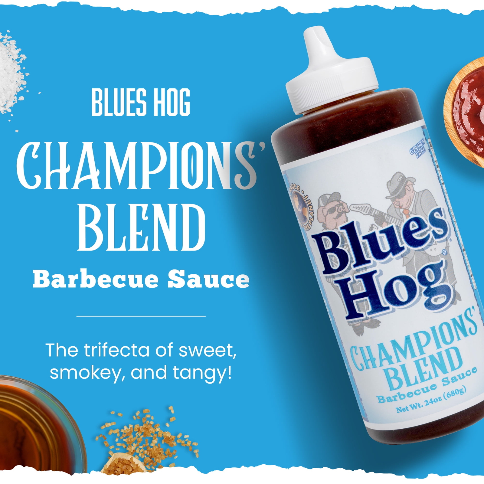 Blues Hog Champions’ Blend is the perfect secret for serving up grand champion que. This handcrafted sauce hits the trifecta with an amazing sweet heat, a touch of smoke, and a bit of zest to give that winning bite. Blues Hog gourmet sauces are gluten free and made of all natural, high-quality ingredients. With more awards than any other commercial sauce on the market, our products are used by 90% of competition bbq teams nationwide. Blues Hog is the award-winning choice of champions! The Trifecta: Sweet Heat, Smokey, and Tangy Blues Hog is the award-winning choice of champions From the "Award-Winning, Choice of Champions" and 2022 Memphis In May Winner Gluten Free