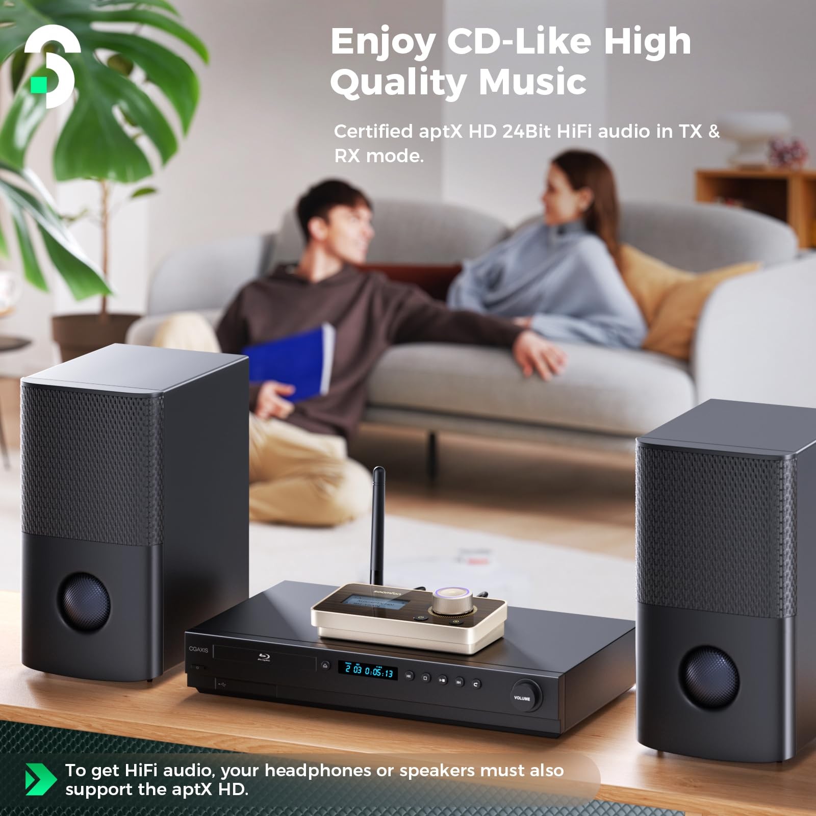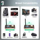 Bluetooth Transmitter Receiver Aptx Low latency - 3-in-1 Bluetooth 5.2 Adapter Aptx HD for 2 Headphones with LCD Display Adjustable Volume Auto Reconnect, Optical AUX RCA for TV Home Stereo 【Ultra-low latency & high-fidelity sound】This Bluetooth transmitter features an aptX encoder, supporting aptx HD audio in both TX and RX modes. It delivers high-quality audio up to 24-bit/48kHz for a CD-like listening experience. In TX mode, it supports aptX LL with an ultra-low latency of just 40ms—perfect for seamless audio synchronization when watching movies or TV. Enjoy the freedom to move around your home without compromising sound quality. 【Practical Knob & LCD Display】This Bluetooth transmitter for TV features a 1.8-inch LCD screen. Compared to LED displays, it provides clearer visibility of the operating mode, device name, volume level, and codec format, allowing you to intuitively monitor the device’s status. The knob on the right side of the Bluetooth transmitter enables seamless volume adjustment, putting you in effortless control. 【Dual Connection in TX & RX Mode】The Bluetooth transmitter allows you to pair two wireless Bluetooth headphones simultaneously in TX mode. With this dual connection, you can privately enjoy music or movies with family, friends, or your partner. Additionally, the Bluetooth audio receiver can connect to two smartphones or tablets at the same time, playing your music playlist through a stereo system, and even adding Bluetooth functionality to your old speakers. 【30M Stable Transmission】The Bluetooth transmitter is powered by Bluetooth 5.2 technology, delivering speeds twice as fast as Bluetooth 5.0 for a more stable and seamless connection. It offers a range of up to 15 meters in TX mode (in open indoor spaces) and 20-30 meters in RX mode (indoors), ensuring reliable performance wherever you are. 【Package and Warranty】Bluetooth Transmitter Receiver x 1, 3.5mm to RCA Cable x 1, 3.5mm Cable x 1, Optical Cable x 1, USB-C Power Cable x 1. We promised 24 months product warranty and lifetime technical support. Also offer 7*24 hours support, please feel free to contact us. 【Note】① To achieve high-quality aptX HD audio, your stereo system and speakers need to support the aptX HD codec format. If you wish to obtain low-latency audio in aptX LL format, your headphones should also support this codec. ② This product does not have a microphone and is not suitable for phone calls or karaoke. It does not contain a rechargeable battery; please use the included USB-C cable for power supply. ③ In RX mode, seamlessly switch music between two devices, but only one can play audio at a time.