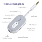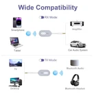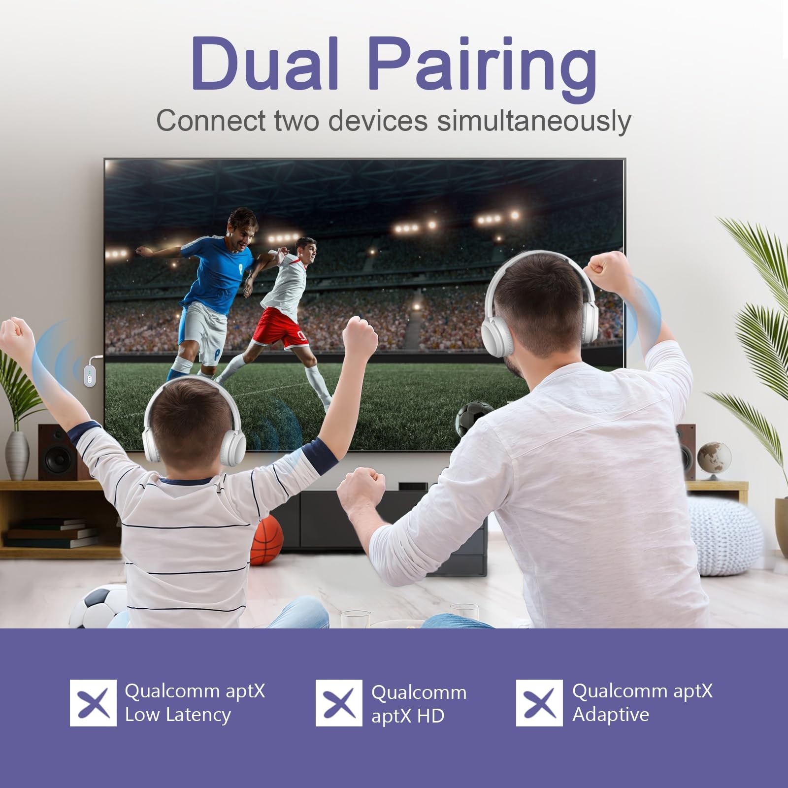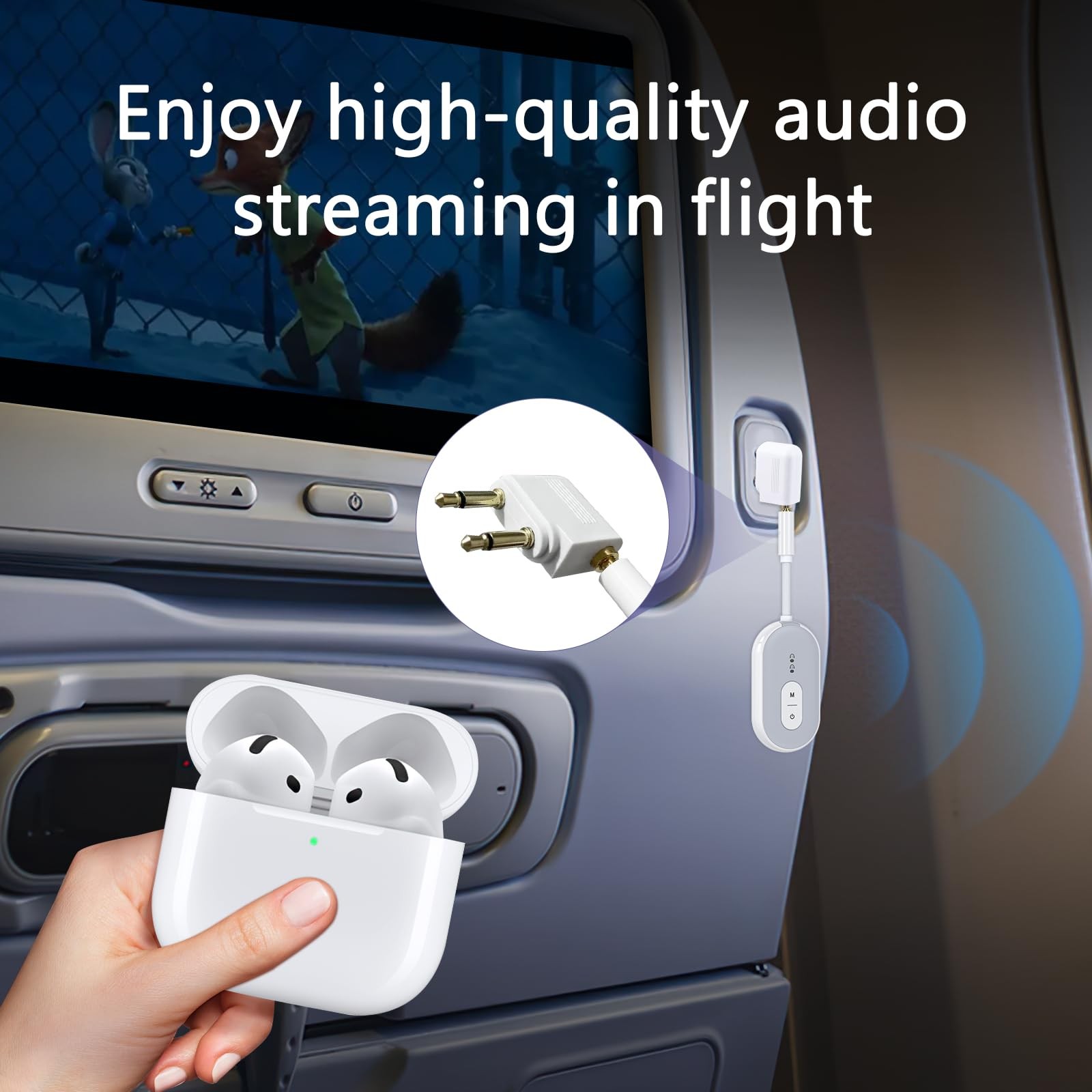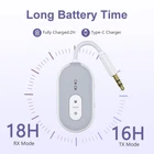 Wireless Audio Freedom – Anytime, Anywhere Enjoy seamless Bluetooth audio streaming for TVs, airplane systems, home stereos, and car audio with this 2-in-1 Bluetooth transmitter and receiver. Experience aptX low-latency sound, dual device pairing, and long battery life—all in a compact, travel-ready design. Key Features: 2-in-1 Bluetooth Adapter Switch between TX mode (connects non-Bluetooth TVs, PCs, and airplane systems to wireless headphones) and RX mode (turns wired speakers, home stereos, and car AUX into Bluetooth receivers). Perfect for Travel & Home Includes a 3.5mm airplane headphone adapter for in-flight entertainment and an RCA cable for home theaters, amplifiers, and older audio systems. aptX Low Latency Enjoy crystal-clear sound with minimal delay, ensuring perfect sync for movies, gaming, and music. (Note: Not compatible with S-O-N-Y LDAC devices.) Stable Bluetooth 5.3 & Dual Pairing Experience fast, stable connectivity up to 10m and pair two devices at once—ideal for sharing audio or connecting multiple speakers. Long Battery Life & Fast Charging Get up to 16 hours in TX mode and 18 hours in RX mode. Fully recharges in just 2 hours with the included Type-C cable. Compact & Portable Lightweight and travel-friendly, perfect for flights, road trips, and everyday use. Plug in and enjoy wireless audio anytime, anywhere. Package 1 * Bluetooth Adapter 1 * Type-c Charging Cabl 1 * Dual-Plug Audio Adapter 1 * Female to Female Audio Adapter 1 * Female to Male RCA Cable 1 * User Manual 2-in-1 Bluetooth Transmitter & Receiver: Easily switch between TX mode (transmitter) and RX mode (receiver) with this versatile Bluetooth adapter. In TX mode, transform non-Bluetooth devices like TVs, computers, or airplane entertainment systems into Bluetooth-enabled transmitters. In RX mode, stream audio wirelessly to wired speakers, home stereo systems, or car radios, bringing seamless Bluetooth connectivity to your favorite devices. aptX Low Latency & High-Fidelity Sound: Experience lag-free audio and premium sound quality with aptX-Adaptive and aptX-Low Latency support. This ensures smooth synchronization between audio and video, making it ideal for watching movies or gaming. Enjoy high-fidelity sound when pairing with aptX-enabled Bluetooth headphones or speakers. (Note: Not compatible with S-O-N-Y LDAC devices.) Stable Bluetooth 5.3 & Dual Device Pairing: Equipped with the latest Bluetooth 5.3 chipset, this wireless audio adapter ensures fast and stable connections within a 10m range. Connect two Bluetooth headphones simultaneously for shared audio enjoyment. The LED indicator lights provide clear pairing status, flashing during connection and staying solid once paired. Long Battery Life & Fast Type-C Charging: Enjoy up to 16 hours of continuous use in transmitter mode and 18 hours in receiver mode. With Type-C fast charging, the Bluetooth audio adapter fully charges in just 2 hours, ensuring uninterrupted entertainment whether you're traveling, working, or relaxing at home. Perfect for Travel & Versatile Compatibility: Designed for airplane entertainment, road trips, and home use, this portable Bluetooth adapter connects seamlessly to in-flight entertainment systems, car stereos, TVs, PCs, and more via 3.5mm AUX jack. The included 3.5mm airplane headphone adapter and RCA cable expand its functionality, making it an ideal companion for your audio needs. Notes: 1. Not for Musical Instruments – This Bluetooth adapter is not designed for use with instruments like pianos or guitars. 2. aptX Low Latency Compatibility – To enjoy low-latency audio, ensure your Bluetooth headphones or speakers also support aptX Low Latency. 3. Avoid Charging While in Use – To prevent potential electrical noise, it is recommended not to use the adapter while charging.