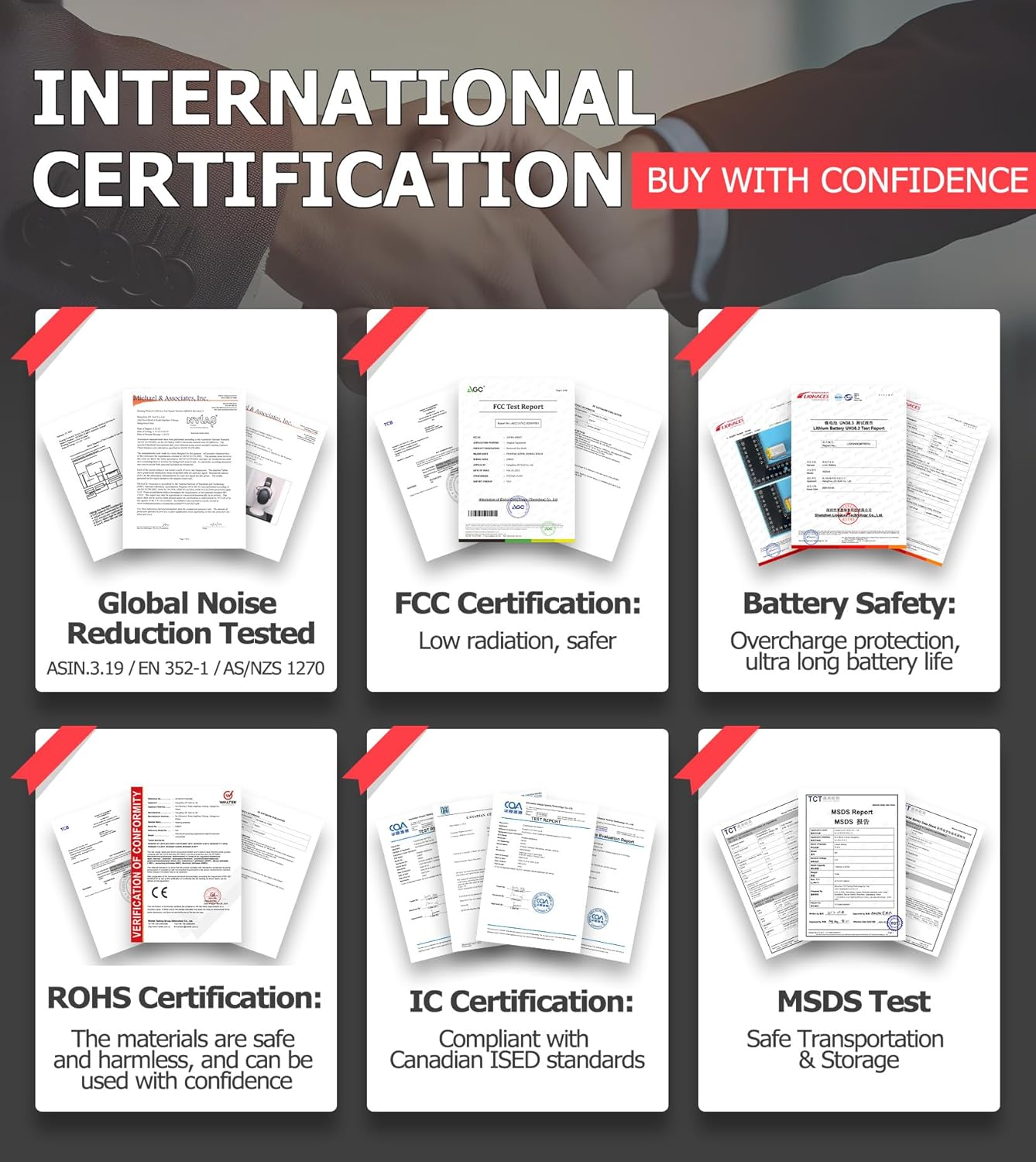 Store New Arrivals Add to Favorite View Feedback Contact 037 Bluetooth 5.3 Hearing Protection Headphones with Rechargeable 1500Mah Battery, 30Db SNR Safety Noise Reduction Ear Muffs 120H Playtime for Mowing, Workshops, Snowblowing - Black Description Item model number 037 Part Number 037 Style Black Power Source Battery-Powered Item Package Quantity 1 Color 037black Pattern Solid Material Sturdy and durable ABS plastic Super soft ear pads Padded headband Chip with Bluetooth 5.3 Country of Origin China Battery Cell Type Lithium Ion Item Weight 11.5 ounces Batteries 1 Lithium Ion batteries required. (included) Batteries Included? Yes Batteries Required? Yes Special Features 40H Playtime, Lightweight, Rechargeable, Fast Charging Size 6.29*4.13*8.07 inches Package Dimensions 8.15 x 6.34 x 4.13 inches Included Components charging cable *1, Manual *1, Bluetooth Hearing Protection * 1, 3.5mm Cable *1, black leather bag *1 ABS Plastic Imported EXTREMELY SMOOTH BLUETOOTH 5.3 TECHNOLOGY: The connection to the phone is smoother, faster and more stable. Bluetooth has a wider range, better sound quality and smarter mode, allowing you to move freely in your work environment, enjoy music and answer phone calls easily. PROHEAR Hearing Protector is engineered with the latest Bluetooth 5.3 technology that provides a more stable connection (wireless range 80ft) than Bluetooth 4.0. Never worry about losing the connection in your pocket BOTH ENTERTAINMENT AND HEARRING PROTECTION: Not only does it have a very high noise reduction level: SNR 30dB protects your hearing against loud noise, but it also gives you a very smooth music experience and stereo sound quality. Built-in 1500 mah lithium battery, equipped with charging cable, faster charging speed, long service time WORK SAFELY AND COMFORTABLE: IDEAL FOR building, lawn mowing, woodworking, landscaping, and protecting your hearing in a noisy environment. Comfortable headband and soft breathable ear pad support you to wear for a long time, making your work fun and focused EASY-TO-USE-CONTROLS: Easy-to-use controls: With the help of “raised part”, you will quickly get familiar with control buttons’ location. And you can make adjustments without taking off your muffs even wearing work gloves. PROHEAR Hearing Protection 037 has more intelligent buttons. You can easily adjust the volume, switch songs, answer or hang up the phone through the button of the earmuffs PROHEAR PROTECTS YOUR HEARING AND GIVES YOU THE BEST SERVICE: PROHEAR 037 comes with a 3.5mm connector.Adjustable headband, equipped with black leather bag, easy to carry and prevent dust, is a good partner in your work. Packaging: A PROHEAR 037 hearing protection, a charging cable, a black leather bag and instructions Product Description The video showcases the product in use. The video guides you through product setup. The video compares multiple products. The video shows the product being unpacked. 1 Use With Confidence 2 Noise Certification 3 ROHS Material safety 4 Battery Safety 5 FCC Certification How to Connect Bluetooth 1. Power On 2. Bluetooth Pair Mode 3. Bluetooth Connected The video showcases the product in use. The video guides you through product setup. The video compares multiple products. The video shows the product being unpacked. Comfortable & Adjustable 1. Padded headband: Reduce head pressure 2. Comfortable ear pads 3. Adjustable: If you feel it is too tight, you can place the earphones on the box according to the required size, which will improve after 12 hours The video showcases the product in use. The video guides you through product setup. The video compares multiple products. The video shows the product being unpacked. Charging Guidance 1. Charging principle: When charging, the red light will turn on and when fully charged, it will turn off 2. EM037 Electricity Query:You can check the battery level of the headset after connecting the Bluetooth of your cell phone The video showcases the product in use. The video guides you through product setup. The video compares multiple products. The video shows the product being unpacked. How to Reset Bluetooth 1. Long press "M",LED blue light flashes 2. Choice "EM037" to Pair The video showcases the product in use. The video guides you through product setup. The video compares multiple products. The video shows the product being unpacked. How to Listen to Music/Answer Calls 1. Short Press "M" Button:Play Music/Answer/ Reject, end a call/Mute /Un-mute 2. Double Press "M" Button: Next track 3. Triple Press"M" Button: Previous Track The video showcases the product in use. The video guides you through product setup. The video compares multiple products. The video shows the product being unpacked. What Will You Get? PROHEAR 037 Bluetooth earmuffs * 1, Charging cable * 1; 3.5mm audio cable * 1; Carrying bag * 1; Manual * 1 The video showcases the product in use. The video guides you through product setup. The video compares multiple products. The video shows the product being unpacked. 1 120H Play Time 2 Easy to Use 3 Adjustable 4 IPX4 5 1 Never Power OFF(AUX Mode) 2 Easy to Control MORE PRODUCTS TO PROTECT HEARING Add to Cart Add to Cart Add to Cart Add to Cart Add to Cart Add to Cart Add to Cart Customer Reviews 4.3 out of 5 stars 6,377 4.3 out of 5 stars 6,377 4.3 out of 5 stars 6,377 4.3 out of 5 stars 480 3.9 out of 5 stars 55 4.8 out of 5 stars 3,017 4.2 out of 5 stars 112 Price $38.12 $ 38 . 12 $57.99 $ 57 . 99 $79.99 $ 79 . 99 $43.99 $ 43 . 99 $41.99 $ 41 . 99 $17.99 $ 17 . 99 $15.79 $ 15 . 79 SNR 30dB 30dB 30dB 30dB 33dB / 33dB Adjustable Headband ✔ ✔ ✔ ✔ ✔ ✔ ✔ Additional Features Bluetooth Clear Calls Music Clear Calls /Music Gel Pads Bluetooth Clear Calls Music 4X Sound Amplification High Density Sponge Pad Gel Ear Pad for Walkers High Reduction & Adjustable Target Audience Average teen to large adults Average teen to large adults Average teen to large adults Average teen to large adults Used for Small Medium Dogs Th