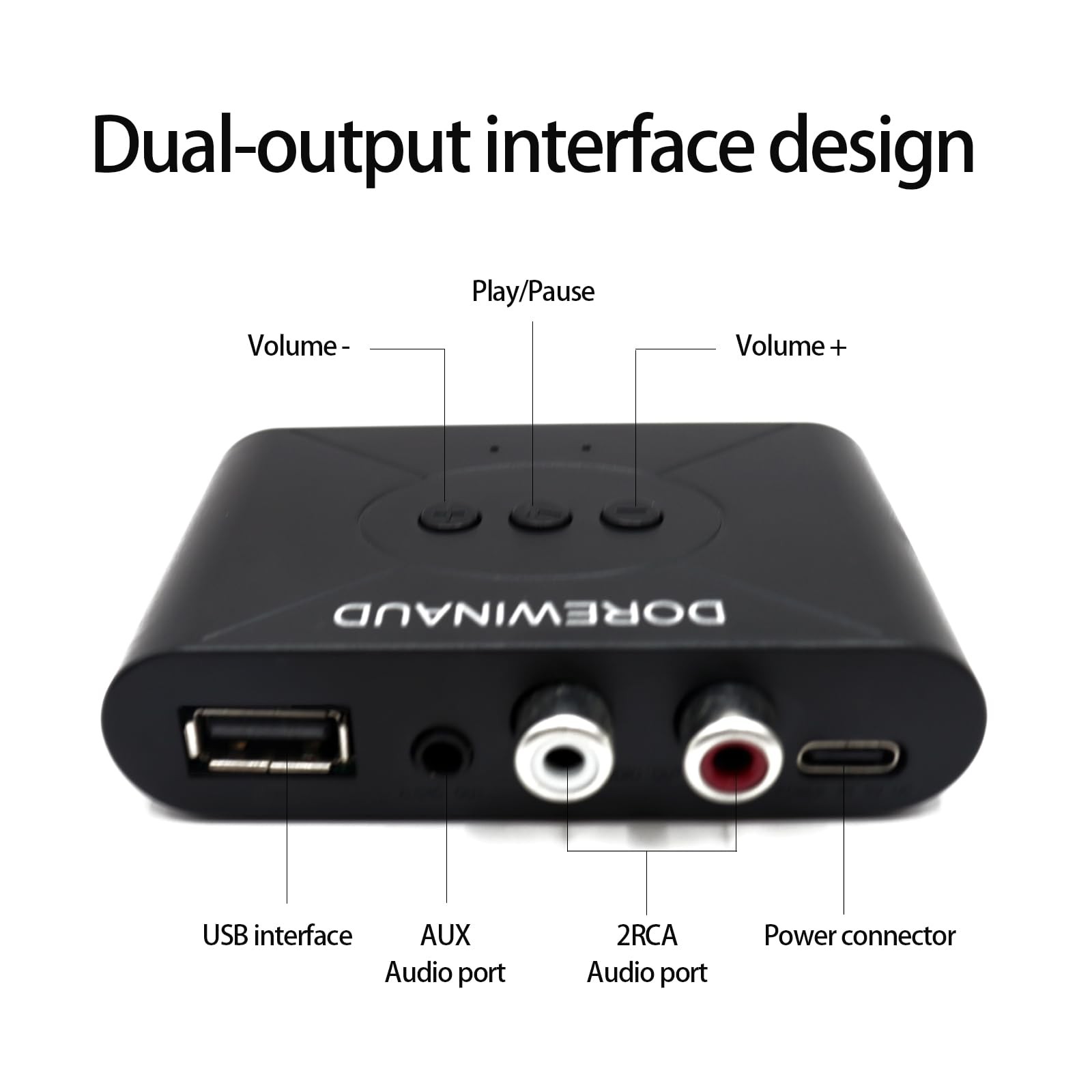 Upgrade your old stereo receiver or car speakers with our Bluetooth 5.3 Audio Receiver. Simply plug it into your wired speaker device and enjoy wireless audio streaming from your Bluetooth-enabled devices. Transform Your Non-Bluetooth Devices: Upgrade your old stereo receiver or car speakers with our Bluetooth 5.3 Audio Receiver. Simply plug it into your wired speaker device and enjoy wireless audio streaming from your Bluetooth-enabled devices. High-Quality Sound Experience: Equipped with the latest Bluetooth 5.3 chip, our receiver supports A2DP and AVRCP protocols for high-definition audio streaming. Experience perfectly synchronized sound with your movies and TV shows. Dual Device Connectivity: Connect up to two Bluetooth-enabled smartphones or computers simultaneously for added convenience. Enjoy seamless audio playback through the USB or Bluetooth interface, and output to RCA port or 3.5mm headphone jack. Easy Pairing Process: Simply plug in the power supply to enter pairing mode. Use your mobile phone with NFC for quick and hassle-free Bluetooth connection. Say goodbye to tangled wires and enjoy the freedom of wireless audio. Wide Compatibility: Our Bluetooth receiver is compatible with a wide range of devices, making it perfect for home stereo systems, car speakers, and wireless headphones. Experience the convenience of modern Bluetooth technology with our Audio Receiver.