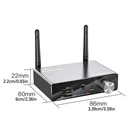 Features: 1. Bluetooth receiving adapter, supporting audio transmission through Bluetooth pairing with mobile devices (such as phones and tablets). Make the old speaker device work like a Bluetooth device. 2. Bluetooth transmitter adapter, you can use it on TV/computer/TV box/PS/switch. 3. DAC converter, supporting signal conversion from digital optical coaxial audio to RCA 3.5mm or R/Analog audio. 4. USB playback, no driver required, plug and play, supports MP3/APE/FLAC/WAV/WMA music formats. 5. TF card playback, no driver required, plug and play, supports MP3/APE/FLAC/WAV/WMA music formats. 6. Remote control, can use infrared remote control to control adapter, convenient to use. 7. External antenna enhances signal and can achieve an unobstructed transmission distance of up to 30 meters. 8. No delay, lossless decoding technology, enjoy HIFI sound quality. 9. Receiver mode is suitable for: car kit/wired speakers/home speakers/speaker power amplifier/headphones, etc... 10. The transmitter mode is suitable for: TV/computer/projector/amplifier/TV box/Bluetooth earphones/headphones/Bluetooth speakers, etc... 11. DAC Audio Converter: SPDIF/Digital Optical Toslink/Coaxial to 3.5mm AUX, suitable for TV/computer/laptop/projector/power amplifier/TV box/for PS5/for PS4/for PS3/DVD, etc. Specifications: Product Name: 6 IN 1 DAC Bluetooth Audio Adapter Bluetooth version: V5.3 Bluetooth distance: 30 meters (barrier free) Operation mode: button+remote control Input interface: fiber optic/coaxial/AUX/USB/TF/Bluetooth Output interface: 3.5mm AUX audio interface Sound mode: bass, normal, treble Frequency response: 20Hz~24Khz Memory expansion: Supports up to 64GB Micro SD card (not included) Sampling rate support: 33/44.1748/96Khz/16/24bit Bluetooth protocol support: A2DP/AVRCP/HFP/HSP USB/TF playback: MP3/APE/FLAC/WAV/WMA, etc Supported devices: mobile phone/computer/TV/projector/amplifier/set-top box/PS4, etc Battery capacity: 1100mAh Working hours: 12 hours Input power supply: DC5V-1A Product Material: Metal Product size: 86 * 60 * 22mm Product color: gray Package includes: 1 * Host (with battery) 1 * Remote control (with CR2032 button battery) 1 * User manual 1 * Fiber optic cable 1 * Coaxial line 1 * 3.5 audio cable 1 * AV audio cable 1 * TYPE-C power supply line