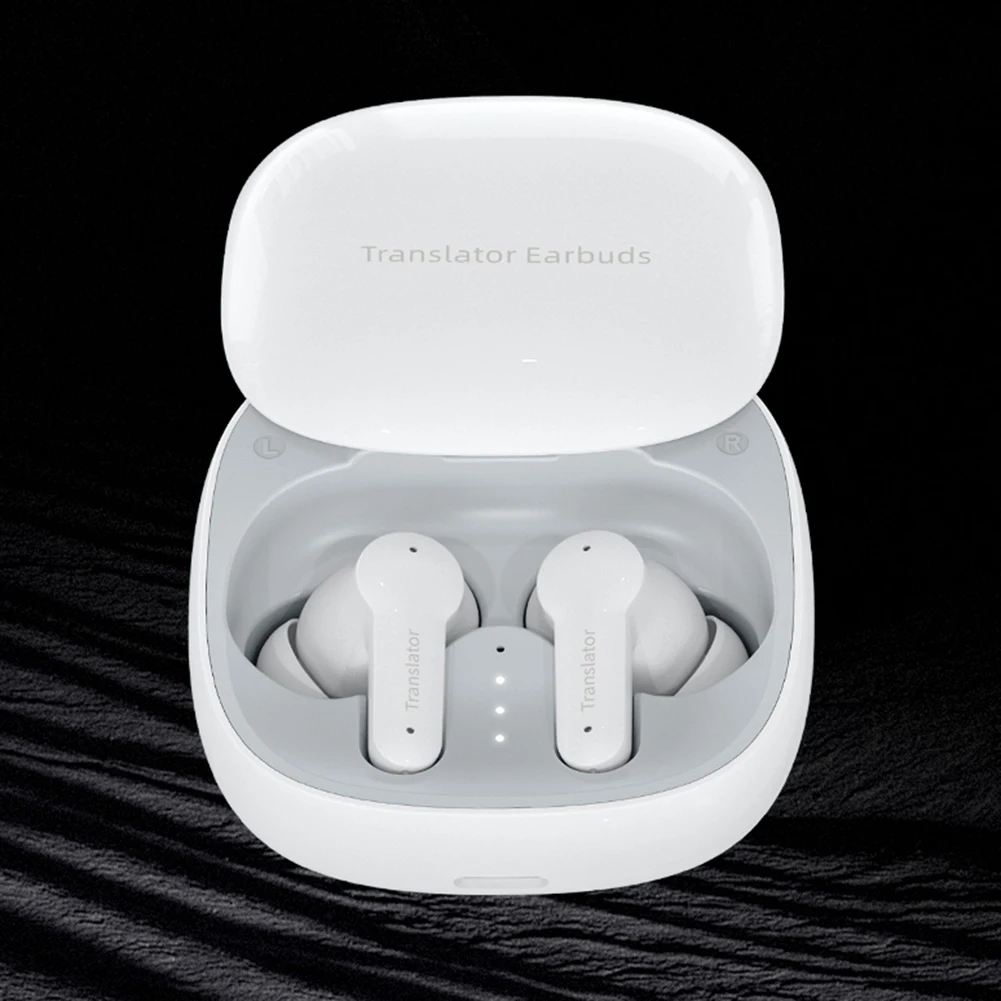 144 Languages Intelligent Translate Earbuds 98% Accuracy Bluetooth-Compatible 5.4 Real Time Translation Earbuds Smart Voice Translator Ideal for Travel and Business Feature: 1. Multi-Language Support: Language translation earbuds offer real-time support for 144 languages with a 98% accuracy rate in just 0.5 seconds. Break language barriers effortlessly and connect with over 90% of the global population for seamless communication. 2. High-Definition Sound Quality: Experience exceptional audio with translator earbuds, ensuring clear listening and speaking. These earbuds deliver crystal-clear conversations, providing you with the best communication experience every time. 3. Bluetooth-Compatible 5. 4 Compatibility: Real-time earbuds are equipped with a Bluetooth-Compatible 5.4 chip, ensuring faster and more efficient connections with iOS, Android, and other devices. Perfect for daily use, they bring convenience to your life. 4. Comfortable Wear: Designed ergonomically, these translator devices ensure comfortable wear even for extended periods. With their stylish design, they are easy to carry, making them the ideal travel companion wherever you go. 5. Long Battery Life: Translation earphones offer up to 15 hours of battery life with the charging case, allowing for extended use. Enjoy continuous translation for up to 5 hours, perfect for long trips or prolonged use, ensuring uninterrupted communication. Specification: Origin: Mainland China Color: White Product form: Push cover Bluetooth-Compatible version: 5.4 Distance: >=10M Microphone: Built-in Yes Interface charging: TYPE-C Built-in speaker: 10mm Battery: Charging case 300mAh Earphone 40mAh Charging time: 1.5 hours Standby time: >=90 days Usage time: Music 6-8 hours Talk: 5 hours Translation: 5 hours Charging case voltage and current: 5V/0.3A Device size: 61*60*30mm/2.4x2.36x1.18inch Device weight: 50g Packaging size: 125*105*45mm Packaging weight: 205g Note: Due to different monitor settings and lighting conditions, the actual color of the item may vary slightly from the pictures. Thanks for your understanding! Please allow a 1-2 cm difference in measurements due to manual measuring. 2 X Translation Earbuds 1 X Charging Case 1 X Charging Cable 1 X Instruction Manual