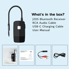 【BLUETOOTH 5.4 & AMAZING SOUND QUALITY】J205 Bluetooth receiver is equipped with the latest Bluetooth 5.4 technology to deliver faster pairing and more stable sound & better Hi-fi wireless audio experience than other normal products. Stream and control your music with a reliable connection from up to 33 FT. 【WIDE COMPATILIBILITY】J205 Bluetooth 5.4 Receiver can be paired with most smartphones or tablet whether feature any Bluetooth version, such 5.0, 4.0, 3.0 etc. J205 must be Ideal for home stereo or vehicle audio systems. But please do not pair the gadget to Bluetooth headphones or Bluetooth speakers due that this is not a Bluetooth Transmitter. 【20H EXTENDED BATTERY USE】Get more 20 hours of music streaming from one full charge and keep always working while in Charging. J205 Bluetooth receiver for speaker saves power by smartly shutting down after 5 minutes without Bluetooth connection. 【EASY TO USE & DOUBLE LINK】Only plug into cars/wired headphones/home stereo speaker systems via the 3.5mm or RCA cable and thanks to compact design of one slide switch makes operation easier for power ON/OFF to pair and connection at once. J205 Bluetooth audio adapter can support multi-points dual connection to two cellphones and automatically re-connection paired devices. 【12-MONTH EXTENDED WARRANTY】If you have any questions, please send us an email. We will have the friendly customer service standby to support you within 24 hours. Meanwhile, we provide the 24-Month product quality warranty and lifetime technical support due to our confident fully-tested products.