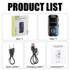 Features: 1. High quality chips with good stability and superior performance 2. Integrated reception/transmission/MP3 playback 3. The product is equipped with a built-in battery, providing long-lasting battery life 4. Digital display screen design, clear and visible 5. Compact and exquisite, with powerful functions 6. Supports TF card expansion, with a maximum support of 32GB for TF cards 7. Equipped with a 3.5mm audio cable that can directly connect to the device 8. Improve cars, audio systems, computers, televisions, tablets, and more Specifications: Product Name: Bluetooth Adapter Bluetooth version: 5.4 Transmission distance: approximately 10 meters Power supply method: Type-C interface Battery capacity: 200mAh Working hours: Approximately 6 hours on full charge TF card support: up to 32G (not included) Transmission speed: 100M (Mbps) Working frequency: 2.4 (MHz) Function: Receive/transmit/MP3 playback/3.5mm audio cable connection TX (transmission mode) 1. Connect the adapter to a computer, TV, or other device that needs to be used with an audio cable, and turn the side switch to TX 2. Power on, when "TX" is displayed and continuously blinks, the adapter is in emission mode 3. Turn on the Bluetooth earphones or Bluetooth speakers and make sure they are in Bluetooth pairing mode. Wait for the adapter to automatically pair with Bluetooth headphones or Bluetooth speakers. After successful pairing, the display screen "TX" stops blinking and remains constantly on. Then, you can play music on your computer or TV, and the sound will be transmitted to Bluetooth headphones or Bluetooth speakers. RX (receiving mode) 1. Connect the adapter to the speaker using an audio cable and turn the side switch to RX 2. When turned on, the display screen will display "RX" and flash. At this point, the adapter is in receive mode. 3. Turn on Bluetooth, search for "GT69" and connect. After successful pairing, the "RX" on the display screen stops flashing and remains on, allowing music to be played. Play music from TF card 1. Insert the TF card into the TF card slot on the side, the screen will display "TF", and the adapter will automatically start playing. 2. Long press simultaneously: Press and hold the up and down buttons while switching modes Remarks If pairing fails, please confirm that the device to be paired is not being used by other devices. You can try pressing the "R" key a few more times. If it fails multiple times, please restart the adapter and Bluetooth earphones or Bluetooth speakers, and then repeat the above steps. Package includes: 1* Bluetooth Adapter 1* Audio Cable 1* Charging Cable