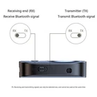 Features: 1. Bluetooth V5.3 2. Supports Bluetooth reception/Bluetooth transmission 3. Automatically reconnect to paired Bluetooth devices upon startup 4. No device connection for 3 minutes, automatic shutdown 5. The music playback time is about 7.5 hours when fully charged 6 Bluetooth supports A2DP, AVCTP, AVDTP, AVRCP, HFP, SPP 7. Supports Bluetooth stereo music DSP technology 8. AUX audio input/audio output 9: Support TF card playback 10. Can be used directly as an MP3 player, with headphones plugged in and Product Introduction: This product is an intelligent Bluetooth transceiver that supports two modes: Bluetooth reception and Bluetooth transmission; Typical use cases include transmitting mobile music to home speakers, car speakers, or CD players, MP3 players, computers, and other audio devices to headphones, speakers, and other scenarios; Flexible use with low distortion, low power consumption, low latency, high fidelity, and simple and convenient stereo operation. Charging limit voltage: 5.25V Charging current: 300mA [Working current] On screen: RX mode: 62mATX mode: 72mA In off screen mode: RX mode: 20mA TX mode: 30mA Shutdown current: 20uA Charging time: approximately 35 minutes Working hours: RX mode: approximately 7.5H TX mode: approximately 5H Battery capacity: 300mAh Bluetooth version: Version 5.3 Bluetooth sound processing: equipped with DSP technology and A2DP (Advance Audio Distribution Profile) function Bluetooth frequency: 2.402-2.480GHz Bluetooth transmission distance: Straight line < 10M Bluetooth microphone effective distance: 0.5~2M Product weight: 27 grams Product size: 59.6 * 41 * 15mm TF card: supports up to 32G [Optional] Product List: Bluetooth adapter * 1 3.5mm audio cable * 1 Charging cable * 1 Instruction manual * 1 32GB Card *1 (Optional)