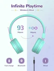 bluetooth headphones 【Stereo Sound & 85dB Volume Limited】: Full-coverage padded earmuffs will wrap your little ones in powerful, high-quality sound. Your 's safety is our priority. Bluetooth headphones max out the volume level at 85db for immersive yet safe listening. They'll get lost in the music, movie, game, and more! 【Bluetooth 5.4 & Built-In Mic】: Say goodbye to tangled wired headphones. wireless headphones adopts the latest Bluetooth 5.4 to maintain stable connection. Play, pause, answer, and end calls with a touch of a button. The built-in microphone of headphones provides hands-free control and easy operation. 【Dual Wireless & Wired Mode】: Enjoy enough listening time with up to 93 hours of playtime on a single charge. Your little ones can listen anytime in both a wired and wireless capacity. When the headphone has run out of battery, it is feasible to plug in equipped detachable 3.5mm Audio cable to continue using. 【Comfort Come First】: The Memory foam ear cushions of headphones are very comfortable and breathable, gently covering little ears. The fully adjustable headband with soft padding rests on your head without any feeling of strain. 【Foldable & Durable】: headphones for school are foldable and portable for easy travel. Stash these lightweight headphones a backpack, purse, or suitcase for music that moves with you. The soft headband can be twisted, turned and bent without breaking.