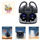 Bluetooth Heads Wireless Earbuds 80hrs Playtime Wireless Charging Case Digital Display Sports Ear buds with Earhook Premium Deep Bass Waterproof Over-Ear Ears for TV Laptop Black 80hrs Playtime & Digital Charging Case: Each ear buds offers up to 8 hours of listening time on a single charge, allowing you to enjoy a total of 80 hours of music by taking turns with the charging case. Wireless earbuds feature a dual LED digital display that provides real-time battery status. Easily monitor the remaining power and plan your usage accordingly. Bluetooth heads support wired charging with a Type-C cable and wireless charging via Qi-certified charging pad (not included) Hi-Fi Sound Quality & HD Voice Technology: Bluetooth earbuds incorporate 13mm double-layer diaphragm drivers, delivering sound with strong bass, clear mids, and bright treble. Experience high-fidelity sound reproduction that brings every note and detail to life, enhancing your music listening experience. The built-in micros ensure high-quality call performance by isolating your voice from surrounding noise. Enjoy uninterrupted conversations with superior clarity, regardless of your location One Button Control & Auto On/Connect: Manage your music, adjust volume, and answer calls effortlessly with the wireless heads' one-button control. Enjoy hassle-free control right at your fingertips. Over-ear earbuds automatically power on and connect to your device when taken out of the charging case. Seamlessly pair and start enjoying your favorite content instantly. They are compatible with most Bluetooth-enabled devices, including smarts, TVs, computers, laptops, and smartwatches Bluetooth & Multi Using Mode: Stay connected to your device with confidence, thanks to the advanced Bluetooth capability of earbuds. Ensures a strong, continuous connection within a range of up to 30ft from the paired device. It greatly improves transmission speed, providing you with a low-latency listening experience. The wireless ears offer both binaural mode for stereo surround sound and mono mode allowing you to enjoy music with either the left or right earpiece alone Design for Sports & IPX7 Sweat-resistant: Bluetooth ears are the result of s of research aimed at improving people's wearing experience based on thousands of ear canal. Designed with flexible and soft ear hooks, earbuds wireless bluetooth fit perfectly in your ears and stay focused on your exercise routine without worrying about falling out. To provide you with customized comfort, 3 multiple sizes of ear tips are available. IPX7 waterproof can keep the beat going even with a little rain