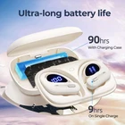 1.90 Hours Playtime & Wireless Charging: Each earbud offers up to 9 hours of continuous listening time on a single charge. When paired with the charging case, X19 Wireless Earbuds deliver a remarkable total of 90 hours of uninterrupted music playback. You have the flexibility to recharge these bluetooth headphones using the provided USB-C cable or wirelessly with any Qi-certified charging pad (charging pad not included). Moreover, the built-in dual LED power display enhances battery status visibility for both the case and headphones. 2.Hi-Fi Stereo Audio & Crystal-clear Call:Featuring a 14.2 mm dual-chamber speaker driver unit, these bluetooth earbuds are precision-engineered to deliver crisp, balanced sound with deep bass. They provide an immersive surround sound experience that you can enjoy on the go. Additionally, the inclusion of two exclusive built-in microphones significantly enhances the performance of conference calls, ensuring that your voice comes through with clarity and volume during phone conversations. Ideal for web meetings and online classes. 3.【Designed for Sports & IPX7 Waterproof】Boasting a comfortable, ergonomic design with flexible, secure-fit ear hooks, these wireless earphones snugly and securely fit into your ears, even during vigorous exercise, preventing any unwelcome slips. With the inclusion of four pairs of rubber ear tips in various sizes (XS, S, M, L), you can enjoy a fatigue-free and painless listening experience, even if you have smaller ears. IPX7 waterproof rating guarantees protection against water droplets and sweat, making these wireless sports earbuds the perfect choice for workouts, running, and gym sessions. 4.【Bluetooth 5.3 & Auto quick Pairing】Adopting advanced wireless technology, these in-ear ear buds will automatically connect with your device quickly once taking them out from the charging case (After the first successful connection). With upgraded Bluetooth 5.3 technology, you can get a faster transfer speed and a more stable connection, sync audio and video without delay, widely compatible with most iOS/Android smartphones, TV, computer, Laptop, smart watch etc,. 5.【Independent Volume Controls & One-key Reset】Equipped with separate multi-function and volume buttons, these bluetooth headset enable you to easily control music, manage calls, and activate voice assistants. Each true wireless earbud has complete volume and track control functions, allowing you to manage all features even when using just one earbud. For added convenience, the charging case is equipped with a reset button, streamlining the reset process. Simply press and hold the reset button to instantly restore these wireless headphones to their factory settings.