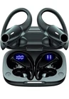 Dual LED Digital Display & 36 hours Playtime: Wireless earbuds with dual power display show the remaining battery of charging case by the number on the screen, and the charging status of ear buds by up and down of LED bar, which will fade when headphones are fully charged. bluetooth headphones with 650mAh charging case have up to 36hrs of listening time with 5 additional charges (6hrs in buds/30hrs in case), you can get the extra electricity it takes to keep your music going. Wireless Charging & USB Type-C Charge: Bluetooth earbuds support wireless charging and Type-C charge. One is just putting the case on the wireless charging pad (not included) with the LED display facing up. Besides, wireless earbuds with earhooks come equipped with Type-C cable to charge the case. Both convenient charging methods improve battery life of wireless headphones to 1 hour on 15mins charge. The number of battery display on the left flashes when the charging case is being charged. One Button Control & Auto On/Connect: The multi-function button on each earphone can manage audio play or calls effortlessly. Skip songs, launch music and answer calls simply by tapping your earbuds wireless bluetooth, so you don't need your device to adjust the music. Automatically power on and connect to your device when simply removing the headphones wireless bluetooth from the case, for a quick and easy operation. With earbuds seated in the case, wireless earphones shut down and recharge. High-fidelity Audio & Crystal-clear Call: Bluetooth headsets adopt 11mm drivers and volume-optimized active EQ keep audio clear and balanced at any volume, and the high compliance diaphragm reproduce a rich bass range, also enhances sound quality and reduces distortion. Mics work together to reject noises around you, keeping your voice sounding clear for every call to precisely for hands-free calls and Speak-to-Chat detection. Design for Sports & IPX7 Sweat-resistant: Wireless earbuds bluetooth with microphone are designed with soft, flexible, and secure-fit earhooks aimed at fully fitting your ears without falling out even for workout. Adjustable earhooks and ergonomic design ensure your ear buds stay comfortably firm in place when running, hiking, jogging, and other activity. IPX7 waterproof prevents ordinary splashing water and rain. Enjoy sports and outdoor activities without worrying about getting wet or sweaty.