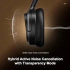 Bluetooth Headphones, Hybrid Active Noise Cancelling Wireless Headphones Over Ear with Microphone, 140H Playtime, Transparency Mode, Deep Bass, Clear Calls, Comfort fit for Travel, Home Office 【Superior Noise Cancelling】With dual noise sensors technology, the ANC microphones detect and filter out up to 95% of low-frequency ambient sound to ensure nothing distracts you from your personal space. Transparency mode lets the sounds in so you can interact naturally with your surroundings 【Up to 140H Playtime】The wireless headphones play up to 80 hours of music in noise cancelling mode. Standard mode extends the playtime up to 140 hours, while a quick 5-minute fast fuel charge provides up to 3 hours of playback when you're low on power 【Immersive Sound】The 40mm drivers produce a wide frequency range that uncovers rich detail of sound with thumping bass and crisp highs, thanks to titanium-plated diaphragm and stonger magnets, which deliver exceptional audio quality and unmatched sound 【Crystal Clear Calls】Triple-Microphone array with VDCNN Neural Network, actively identifies and suppresses background noise and helps pick up your voice on phone call, improving the clarity of your voice by up to 30%, so it's heard clearly 【Premium Comfort】Our over ear headphones are designed with your comfort in mind. The ultra-soft memory foam ear cushions, adjustable headbands and 90° swivel joints provide a comfortable fit, while the construction ensures that they can withstand your daily wear 【Multipoint Connection】Bluetooth 5.3 provides a strong, reliable connection to your device up to 50ft (no barrier), allows for two-device connectivity at once, enabling you to move between devices seamlessly. Campatible with most Bluetooth enabled devices and easily activate voice assistant as you need