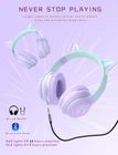 【ADORABLE CAT EAR SHINING LED DESIGN】These wireless bluetooth headphones special design with the super cute cat ears, the bluetooth headphones with Red/Blue/Green LED can blink and changes color with the rhythm, let your dance with the music, bring more fun and happiness to your childrens and family. 【2 MODE ON/OFF LED Light】When you are using the childrens bluetooth headphones in bluetooth mode,the LED light will blinking, you also can switch to LED light off mode, just press three time play/pause button, so as to reserve more battary for longer music playing. 【STEREO SOUND AND LONG PLAYING】These wireless headphones Use Bluetooth 5.1 and 40 mm drive diameter, give you dynamic and powerful sound quality. Cat ear wireless headset only need charge 2-3 hrs, it will play 5-7 hrs on the LED light flash mode and play 8-10 hrs on LED light off mode.worry free the battary when you traveling. 【UNIVERSAL COMPATIBILITY AND MUCH FUNCTIONS】bluetooth headphones headset not only can use a standard 3.5mm audio jack as wired mode, but also can work with most smartphones,,iPhone,iPad,Pc and other bluettooth device. It also can insert SD card listen music. 【Best GIFT FOR 】Our bluetooth headphones combines elements of music,lights,color together,make your to be the shining star,always attract other's attention on the whole party.best gift choice for Thanks giving day,Children's Day,Christmas day,school opening day,Birthday day etc