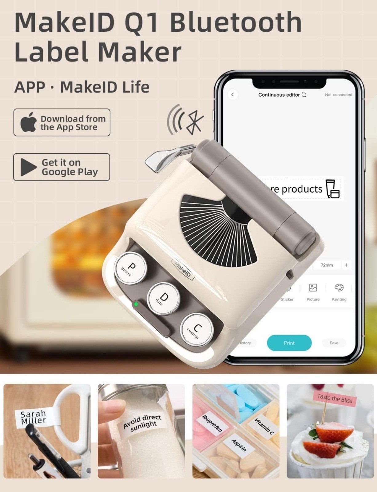 Makeid Q1 HD Label Maker Machine - Vintage Label Makers with Custom Fonts, Templates, Borders, Logos, QR Codes - , Retro Typewriter Keys, Easy to Use - Green