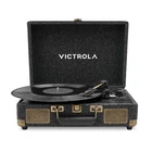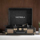 The Victrola Venture is a classic suitcase record player reimagined with mid-century modern details and exceptional sound performance. The Venture features a custom-tuned stereo speaker enclosure, delivering increased volume and bass for a superior listening experience. Equipped with VINYLSTREAM™ Bluetooth output, the Venture allows for easy, wireless streaming to your Bluetooth speakers or headphones. With its compact, portable design, the Victrola Venture is easy to set up and take anywhere, ensuring you always have great music at your fingertips. This stylish suitcase record player features beautiful mid-century accents, including a fabric wrap and woodgrain plinth, and is available in three finishes—black, oak, and walnut—allowing you to choose the perfect look for your space. 3-speed (33 1/3, 45, 78 RPM) record player with built-in speakers provides a crisp, clear listening experience Custom-tuned stereo speaker enclosure that delivers increased volume and bass Bluetooth connectivity for streaming music from any Bluetooth-enabled device to the integrated stereo speakers VINYLSTREAM™ Bluetooth output for wireless streaming to your Bluetooth speakers or headphones Features a 3.5mm auxiliary input, RCA, and headphone outputs