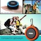 1> IP65 Waterproof - The improved silicone cases and interface design ensure shockproof, dustproof and waterproof, can be used under harsh environment (such as outdoor and shower). But do not immerse it into water. 2> Support Bluetooth & TF Card - Equipped with the advanced bluetooth 5.0 technology and TF card slot, expanded up to 32 micro SD card (micro SD card is not included), you can not only enjoy music through bluetooth, also can insert a sd card into the the speaker to play. 3> Built-in Mic & Stereo Sound - You can conveniently pick up a call by this mini shower bluetooth speaker in bathroom, at home and office, anywhere as long as it is connected to your smartphone. Stereo sound, with full range output, crystal clear articulate high end. 4> Rechargeable & Compact Size - Built-in 350mAH rechargeable battery, compact and lightweight, you can take it everywhere, hiking, cycling, boating, climbing and so on. 5> Come with Detachable Suction & Metal hook - With firm suction cup and Aluminum alloy metal hook, you can attach this portable outdoor speaker to smooth flat surface like bathtub sides, walls, glass, mirror and can also attach it to your backpack with metal hook. Specification: Input Voltage: DC-5V Bluetooth version: 5.0 Charging time: Approximately 2 hours Battery: 3.7V/350 MAH Size: 3.74*3.38*1.38inch (9.5*8.6*3.5cm) Weight: 180g What is included: Mini Speaker x 1 Camping Snap Hook x 1 USB charge cable x 1 Suction cup x 1 English User Manual x 1 Note: 1. Do not immerse it in water. 2. It would be better that charge it before using it. 3. Please charge timely and keep the item full of power (more than 60%) when you do not use it in a long time to avoid the damage to battery. 4.Please keep the surface of wall dry before using the suction cup.