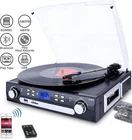 Bluetooth Connection - Turntable with Bluetooth function. Playing music from external device wireless, such as moblie phone, laptop and other bluetooth device USB/SD Encoding - Converts vinyl to USB flash drive/SD card directly in MP3 format. No PC or laptop required Traditional Music Playing - Cassette Player with eject and fast forward function. Aux in for connecting of other devices(CD,Ipod,Iphone etc) Three-Speed Record Player - Belt-driven turntable fits for vinyl records at different speeds. 33 , 45, 78 RPM selectable. (Please note:Long press around 5 seconds to power on) More Fuction - Built-in stereo speakers. Analog AM/FM stereo radio, LCD Screen with backlight, Earphone jack. With Dust Cover and 45RPM Adaptor