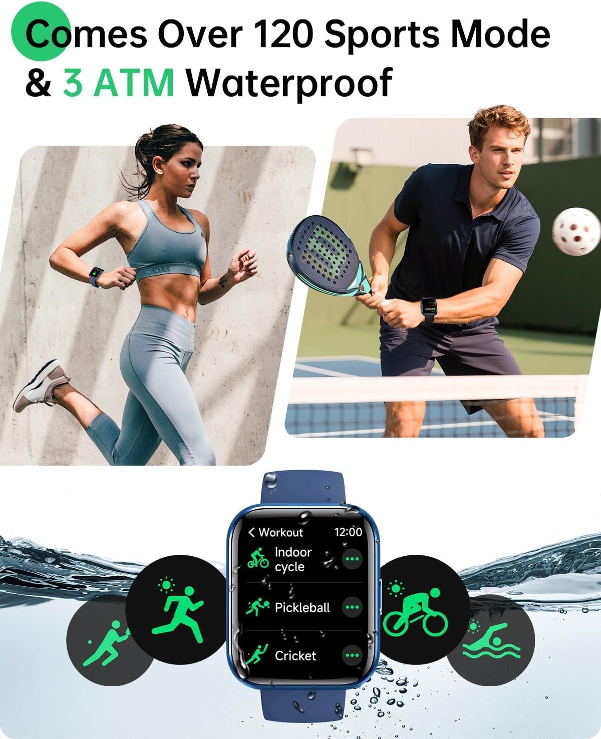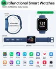 【Smart Voice Assistant & Bluetooth Calls & Notification Alerts】This Smart Watches for Women Support Alexa/Google Assistant,Use it for quick weather queries, music, and reminders. Directly connect via Bluetooth to your phone for hands-free calling,no need to touch your phone while driving or working out. Get real-time alerts for texts, WhatsApp, and calls 【24/7 Health Guardian】Smart Watches for Men Support 24/7 heart rate,blood pressure monitoring, sleep analysis(light/deep/REM), and all-day activity tracking.Real-time monitoring of heart rate and personalized sleep improvement tips. Know your body, anytime, anywhere 【3ATM Waterproof & 120+ Sports Modes】This Fitness Tracker for Women including Swim, surf, hike, yoga, pickleball, etc.Automatically recognizes movements and records data(Step、Distance、Calories、Heart Rate),50 meters waterproof: swimming and surfing, outdoor in rainy days, hiking, heavy sweating, everything is possible 【1.83" HD Touchscreen】Fitness Watches for Men Featuring a vibrant 1.83-inch HD full-color display (320x386 resolution), this fitness tracker delivers crisp visuals indoors or outdoors. Its high-sensitivity touchscreen reacts instantly to every swipe and tap. The personalized interactive interface captivates your eyes and seamlessly syncs with your lifestyle 【350mAh battery lasts 10 days】The Samrt Watch perfect for travel or daily grind. No need to charge frequently for daily use, and say goodbye to power anxiety on business trips. More features such as weather, stopwatch,timer, sedentary reminder, flashlight,camera control, find phone function, etc 【120+ Watch Faces & Customizable Bands】This Fitness Watches for Women has Personalised dial: classic numbers, minimalist lines, anime IP, 120+ styles change in a Second. 22 mm Quick release bands: silicone,nylon,leather,business, sports and leisure style in a second 【iOS/Android Compatible +5-Year Wa-rranty】Smart Watch for Android Phones Supports iOS 12+/Android 6+ systems, The Smart Watch for iphone compatible covering 95% of mainstream iphone and android phone models. 5-year warranty: after-sales team is ready to support any product issues or suggestions