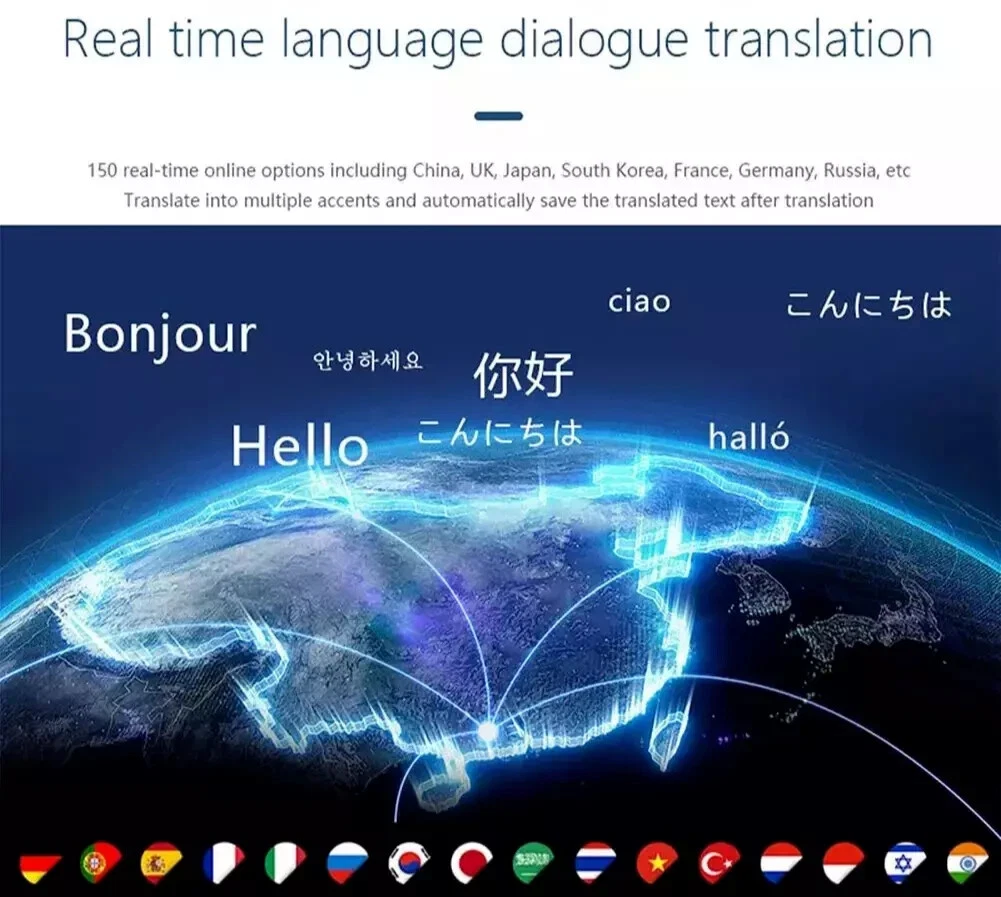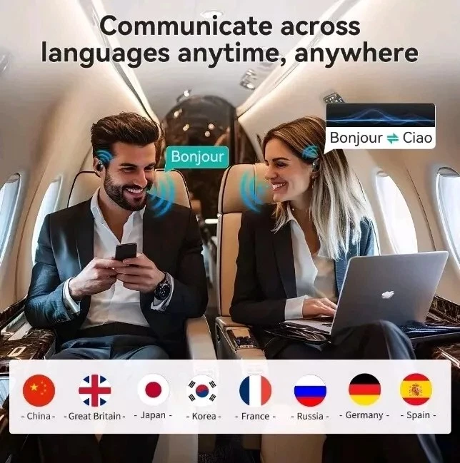 Experience the ultimate in communication and audio with our Wireless Headphones, featuring 9D stereo sound, Bluetooth 5.3 connectivity, and AI-powered translation capabilities through our dedicated app. Break language barriers and connect with people worldwide, while enjoying immersive audio and situational awareness." Take your global connections to the next level with our innovative Wireless Headphones, equipped with AI translator technology and a user-friendly app. Enjoy 9D stereo audio, seamless Bluetooth 5.3 connectivity, and real-time language translation, making them perfect for travelers, business professionals, and language learners." Discover a world of limitless communication with our Wireless Headphones, featuring advanced AI translation capabilities and a intuitive app. With 9D stereo sound, open ear hooks, and air conduction earphones, these headphones provide an unparalleled listening experience while keeping you connected across languages and cultures." Key Features: - 9D stereo sound for immersive audio experience - Bluetooth 5.3 technology for seamless connectivity - AI-powered translation capabilities through dedicated app - Real-time language translation for effortless communication - Open ear hooks for situational awareness - Air conduction earphones for clear and natural sound - Sweat-resistant and lightweight design - Long-lasting battery life