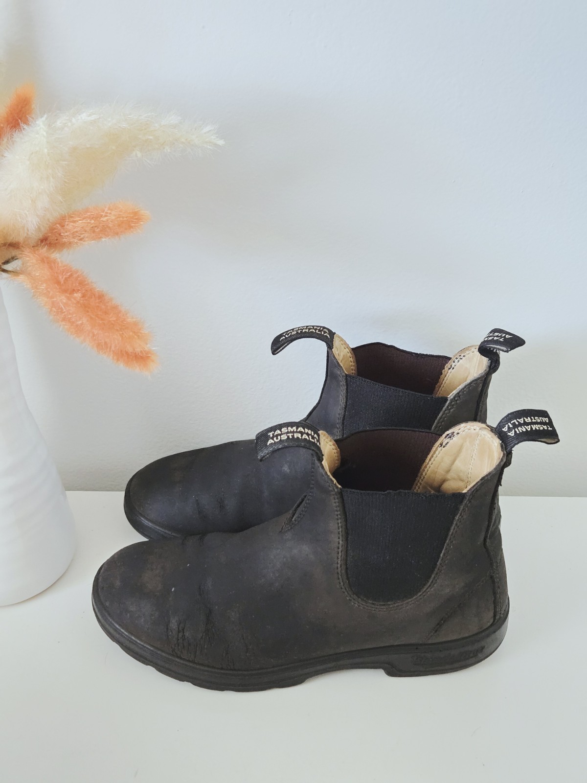 "The evolution of the iconic #500 boots continues with these Blundstone Classic Chelsea boots. Made for thrill seekers and explorers, these boots offer the ultimate in comfort and durability." Women's US Size 8.5. Preowned in good condition with some visible wear on the leather, as shown in the photos (see photos). They could probably use some leather conditioning. PLEASE NOTE π Please take your time to review the photos closely as they are part of the item's description. We always try to present colors as accurately as we can, but keep in mind that colors may show up differently on different devices. We do our best to take all photos in natural light during the day, so as to ensure that any noticeable flaws are visible in the best lighting. π We include written measurements in our descriptions where applicable and also show the measurements in the photos. π We pack everything as carefully as we can and all orders come from a clean, pet-free, smoke-free space. π All of our items are sold as is. We do not accept returns. If you have any questions or need to see another photo or two, feel free to reach out; we are more than happy to help! Warmly, Tamy (Narrow Path Expo)