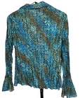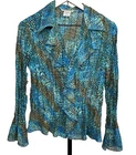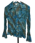 Apt 9 Top Button Up Blouse Crinkle Pleats Ruffle Front and Hem Bell Sleeves Sequin Romantic Fairy Career Women’s Size Small Stretch Bust 40 Length 24 inches. Polyester