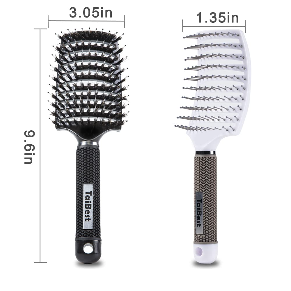 NATURAL BOAR HAIR BRISTLES: One of the brushes in our hair brush set is crafted with natural boar bristles which helps to promote a healthy head full of hair by stimulating and spreading the natural oils from the scalp throughout the full hair length, from root to tip TAME THOSE TANGLES: The second detangling hair brush only contains long nylon “pin” bristles with comfortable, non-irritating rounded ends. You can use this detangling brush for curly or straight hair, to detangle thick or thin hair and massage your scalp without pulling your hair LARGE CURVED HEAD: The two hair brush detanglers feature large heads with a meniscus radian design, the combination of a convex curve and a concave curve give both brushes the maximum number of scalp contact points to massage and promote natural oil stimulation VENTED FOR FASTER DRYING: We designed the large head of our hair brushes with vents to create a more efficient airflow for faster drying while styling your hair with a blow dryer EASY HANDLING AND STORING: Our vented detangling brushes for hair come with a textured non-slip grip for better handling of the brush during use. When finished you can store our brushes by utilizing the handle hole or the strong magnet in the end of the handle Product description