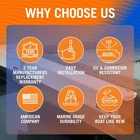 Boat Dock Bumper Guards Dock Boat Bumpers for Dock Edge or Piling Bumpers Ensure your boat or PWC stays in pristine condition with our thick, tough protection Boat Dock Bumper guards. Crafted from heavy-duty, high-density closed-cell foam that maintains its shape over time, our dock pole bumpers and horizontal protectors offer reliable defense. Marine-resistant and designed to withstand the elements, our deck or piling bumpers feature a thick tri-laminate UV-resistant vinyl and polyester cover, with double thermal-bonded seams and corrosion-resistant grommets. Installation is a breeze with our interior or vertical dock bumper edge pads, complete with stainless steel screws and washers for versatile mounting configurations, including edges or posts. The angled ends facilitate easy interior wrapping in a slip. Plus, enjoy peace of mind with our 2-year replacement warranty, reflecting our confidence in these boat dock accessories. Available in 24, 36, and 59-inch pads as well as our corner dock bumpers for docking. Use the corner pieces as dock corner bumper guards. Save yourself the trouble of using boat fenders and install our boat dock bumpers on your dock edge. Our Dock Fenders and Dock Bumpers embody the quality synonymous with Better Boat, a family-owned American business dedicated to premium boat and RV accessories, care, and cleaning supplies. We stand behind your satisfaction and the durability of our products. Fast and Free Shipping You're already purchasing the item. Why pay additional for shipping, especially slow shipping? We get your order shipped out within 1-business day and delivered to your doorstep as quickly as possible. Competitive Pricing With our dynamic pricing model, our prices are always competitive. Our prices are some of the lowest that you will find on the internet. Rest assured that you're getting a good deal when purchasing with us. 30-day Money Back Guarantee We are committed to making sure that you leave this transaction satisfied. If you're unhappy with the product for any reason, you may return it back for your money-back or a replacement within 30 days. No questions asked!