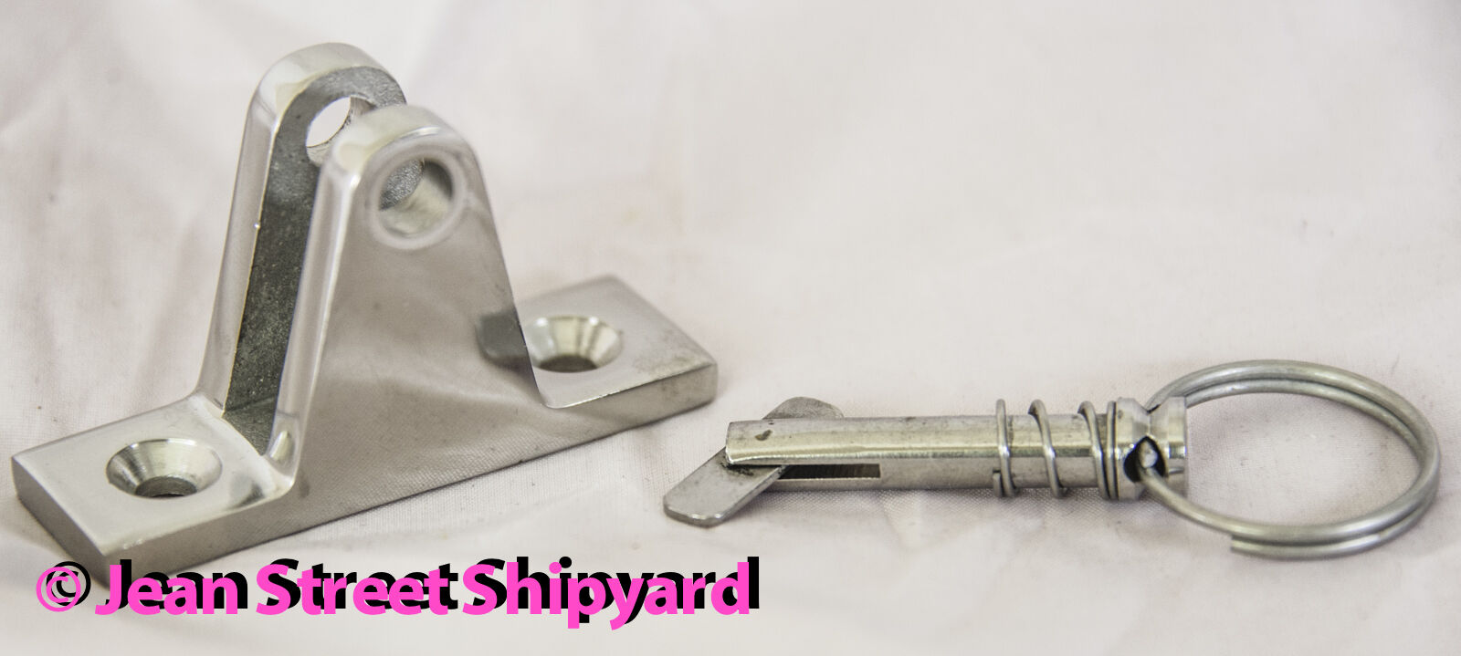 Sea choice Part 75941 Bimini Top Deck Hinge with Quick Release Pin Quality 316 Marine Stainless Construction 1/4 inch spring loaded quick release pin Base Dimensions 2-7/16 inch Long x 3/4 inch Wide Installs with #10 Countersunk Fasteners (not included) Authentic Seachoice Product from Authorized Seachoice Reseller No Hassle Warranty - We are Authorized to Handle Any Warranty Issue Direct for You Really In Stock in our Own Store - Ready to Ship to YOU Quickly and Carefully Packaged and Shipped by our Own Ship's Store Staff No Middleman or Fulfillment Center - Just a Family Business Proven Reliable Seller Real Customer Support from a Real Working Boatyard FREE HASSLE FREE RETURNS Thanks for shopping with Jean Street Shipyard . We care for our products because we care about our customers. Your purchase will be carefully packaged by our own ship’s store staff, not someone at some far away fulfillment center. When we say your item is "new" , then that’s what you get. We don’t sell seconds, overstocks, obsolete or outdated inventory or anybody’s rejects as new product. We are an authorized Seachoice dealer, and authorized dealer for many other marine product lines. Our inventory is right on hand in our own store, and is carefully selected using the experience that comes with 175 plus years in business in the Marine industry. We have been in the same place, same building, doing the same thing since 1843, and we are standing by now to serve your boating needs. We sell and endorse the products that we use ourselves and products that have stood the test of time. We have been around long enough to see what works and what doesn't. When you need assistance or have a problem, you don't get somebody in some far away call center reading que cards, we will put you in touch with a skilled professional right from our own shop that actually uses the product, someone who has likely also had your question or problem as you. Get the advantage of a small business that has time to care about every single customer and also has the experience to help you properly. Like to know more about us ?? ... Google us - Jean Street Shipyard Tampa See you again soon! By the way… Jean Street Shipyard stocks thousands of items right in our own store. We strive to stock the products that most boaters need, and have it handy and always ready to ship. We are adding products to our eBay store every day. So if it’s not here, or if you don’t see exactly what you need, chances are that we have it stock or can get it for you quickly. Please message us, email us, or give us a call. We are standing by to serve you. If you need larger quantities of an item that is online at our store please contact us. We can handle special orders and build lists. Give us a call! Return Policy: If this purchase does not meet your expectations or is not as described or photographed, or even if you just changed your mind or ordered the wrong part - its all OK - please contact us within 30 days from delivery to your shipping address for return instructions, or just return it through eBay. We want to make your Online experience as seamless and easy as coming in person. So no stress, we will make it work. If you have a warranty problem, we have a good reputation with our venders We will contact them for you, they usually listen to us, we can ship you an exchange without the time to wait for an answer from the manufacturer. We strive to meet your expectations! All offered items by Jean Street Shipyard, new, used or pre-owned are selected by us for High Quality and Excellent value. Contact us via text; phone; message or via email for inquiries or questions. or stop by and pay a visit! © Jean Street Shipyard, Inc. All content of this listing, both images and written text and copy, is the priority work product and intellectual property of Jean Street Shipyard Inc. and cannot be copied or used for any reason without the express written permission of Jean Street Shipyard.