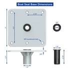 Boat Seat Base,Boat Seat Pedestals 7" x 7" Aluminum Alloy,Seat Base with 3/4" Pin Post Socket,Durable and Sturdy High Quality Forging: Durable and sturdy, the boat seat base, 7" x 7" is forged from high-quality aluminum alloy, boat seat pedestals 7" x 7" aluminum alloy has the advantages of hardness, strong pressure resistance, and corrosion resistance. You can confidently hand over your seat to the boat seat mount Easy to Install: Boat seat base is installed by a relatively simple drilling installation method, you only need to leave space on the deck of the ship for the column connecting the 3/4 inch hole in the middle to be placed, and drill small holes for the surrounding 6 3/8 inch holes and tighten them with screws Precision Structure: The boat seat base mount is exquisitely crafted, with a sleeve located in a 3/4 inch hole that becomes more solid as it is inserted tightly. The bottom of the boat pedestal base is designed with a bridge structure, giving it excellent compressive strength, ensuring that you can sit more comfortably and safely Widely Applicable: If you are a ship enthusiast, this boat seat mounts is perfect for you. The external size of 7 * 7 inches allows you to install this boat base anywhere on the ship. The middle 3/4 inch sleeve is suitable for most ship seats. Using this boat seat base greatly enhances your water experience Optimize Sail Experience: Do you feel bad about the boating experience of water boats swaying? This boat seat base is stable enough to firmly secure your seat. With this boat chair base, you can freely choose comfortable marine seats and enjoy a safe and comfortable water life (Item does not ship to Miami&Doral, FL), have any problem please contact us !