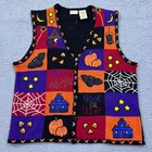 Bobbie Brooks Womens Sweater Vest Halloween Knit Large VTG Grandma Pumpkin Patch