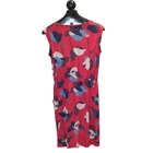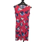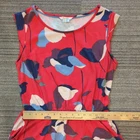 Boden Dress US Size 10R Color Red with Blue Abstract Flowers Stretch Knit with Comfortable Elastic Waist Sleeveless Pockets Knee Length Excellent Preowned Condition! No observed stains or holes.