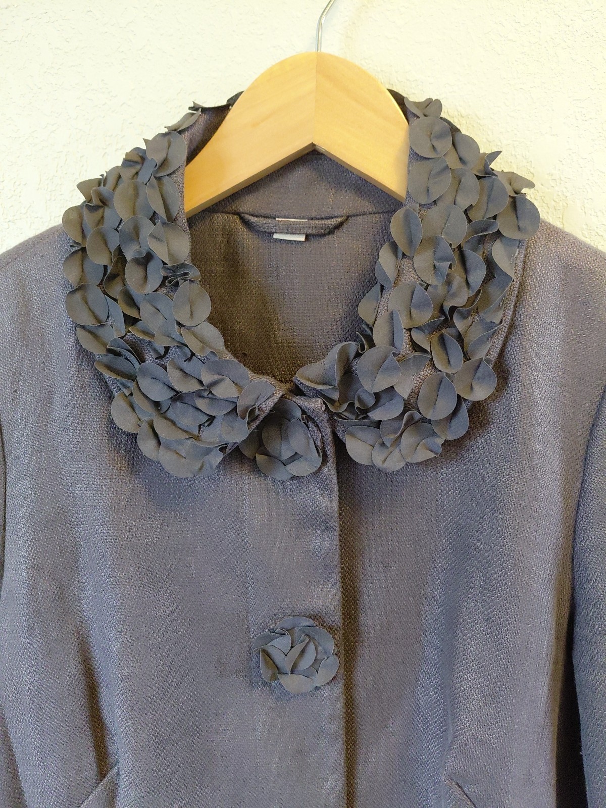 The Boden Navy Linen Jacket is a stylish and versatile addition to any woman's wardrobe. This short blazer-style jacket features ruffle flower detail and snap buttons for a feminine touch. Made from high-quality linen, it is suitable for casual occasions during the winter and spring seasons. The size 4 jacket is designed for regular fit, perfect for adding a pop of color to any outfit with its beautiful blue hue. With the reputable Boden brand behind it, this jacket is sure to be a quality and fashionable choice for any woman.