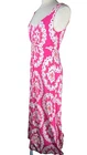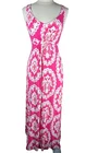 Measurements: armpit to armpit 17” This beautiful Boden jersey maxi dress is perfect for any occasion. The dress features a stunning pink and white floral pattern that is sure to turn heads. The V-neckline and sleeveless design make it perfect for warmer seasons and the pullover closure adds convenience. The dress is made of 95% viscose and 5% elastane, making it stretchy and wrinkle-resistant. It is machine washable and has been made in Morocco. The dress is available in size 6 (US) and 10 (UK). Whether you're traveling, going to a party, or just looking for a casual outfit, this dress is perfect.