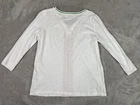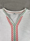 Elevate your wardrobe with this beautiful Boden top. The white color is perfect for any occasion, while the geometric pattern adds a touch of bohemian style. The 3/4 sleeves and V-neckline create a flattering silhouette, and the embroidered accents add a unique touch. This blouse is made of high-quality cotton material, which makes it comfortable to wear and easy to care for. This top is a size 8 and fits regular size women. The pullover closure makes it easy to wear, and the machine washable garment care makes it convenient to maintain. Whether you're dressing up or down, this Boden blouse is a versatile addition to your collection.