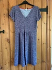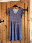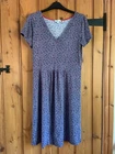 Boden short sleeve floral jersey dress Size UK 12R Navy background with pale pink & red floral pattern V neck 52% modal, 48% cotton Length - from top of shoulder to hem - approx 37" Excellent condition